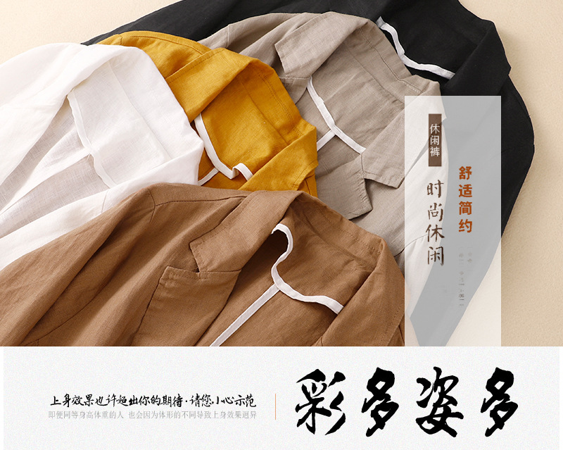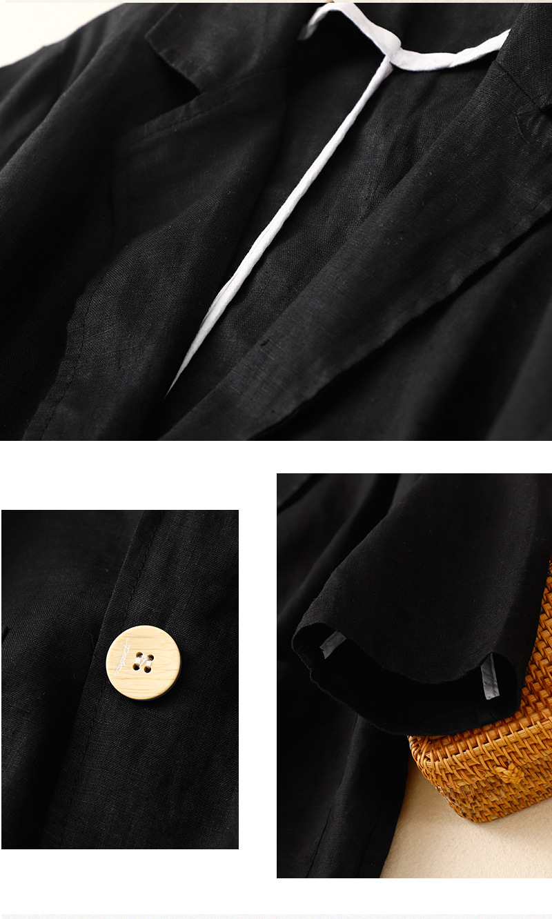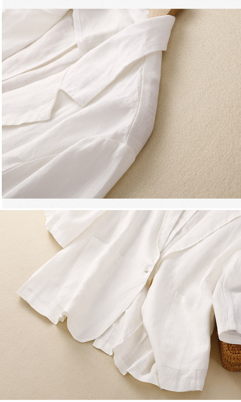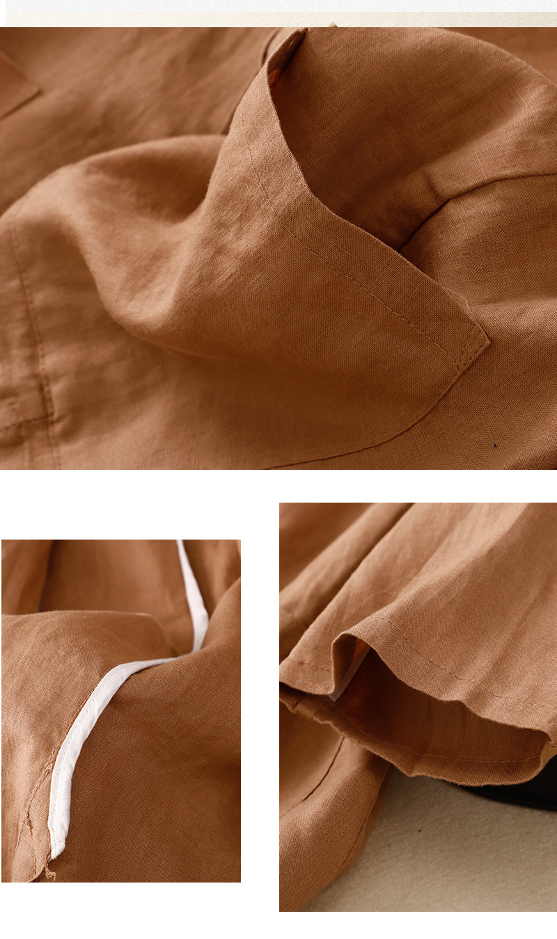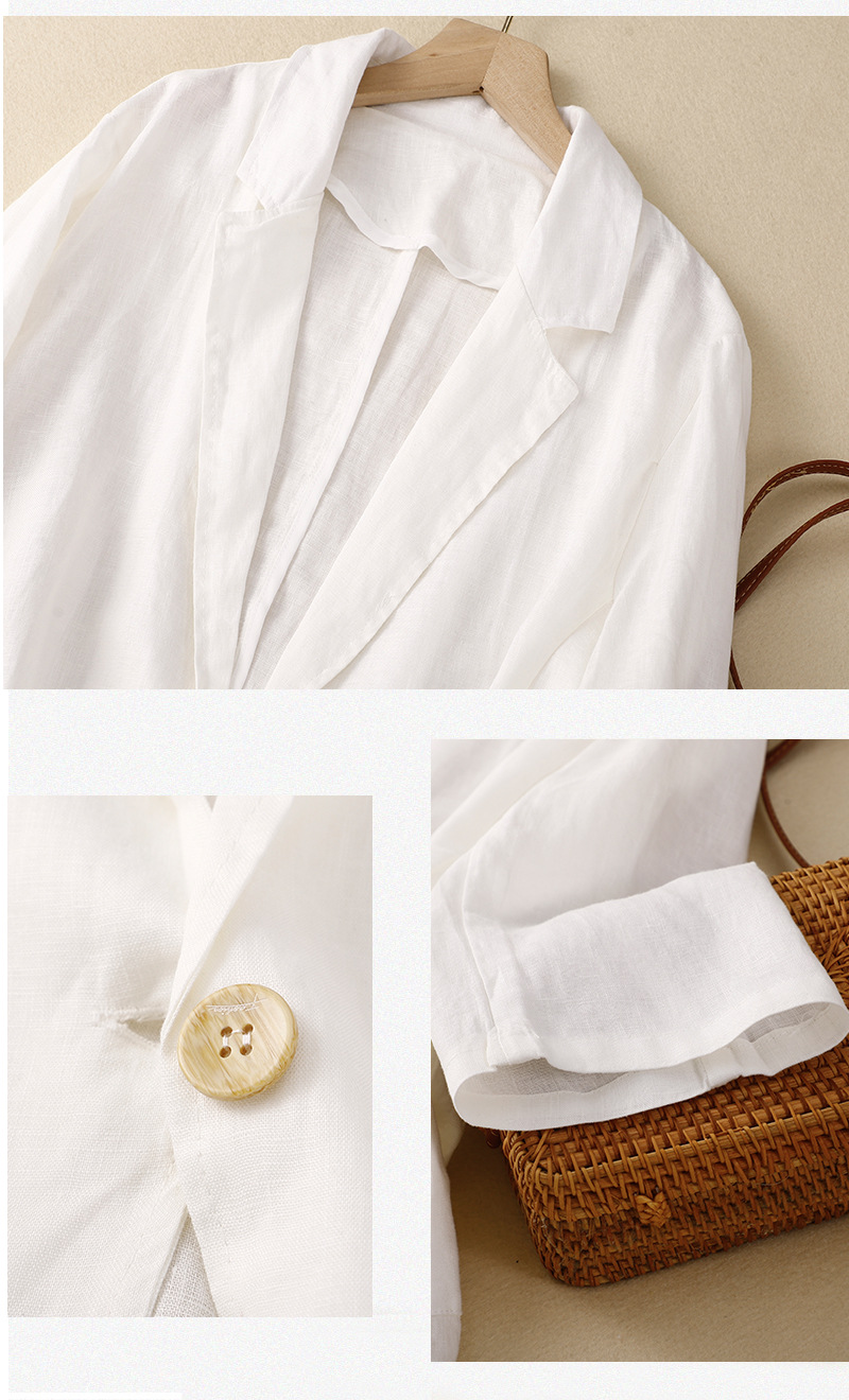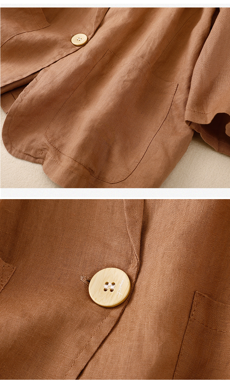 2026 봄 가을 신상품 예술적인 레트로 스타일의 면과 린넨 소재 캐주얼 7부 소매 숏 재킷 여성용 단색 블레이저스토어 가기