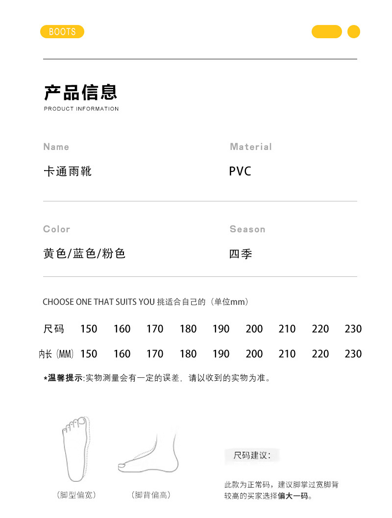 새로운 어린이 장화 만화 공룡 여아 방수 아기 장화 소년 소녀 면 물 신발 유치원 어린이 신발