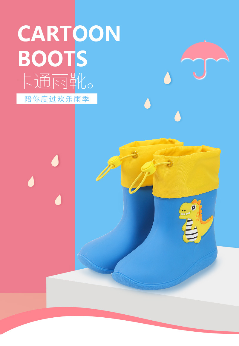 새로운 어린이 장화 만화 공룡 여아 방수 아기 장화 소년 소녀 면 물 신발 유치원 어린이 신발스토어 가기