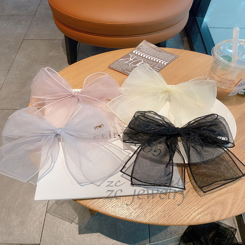 한국식 Organza 활 슈퍼 페어리 머리핀 고급 다층 백 헤드 탑 달콤한 어린 소녀 머리핀