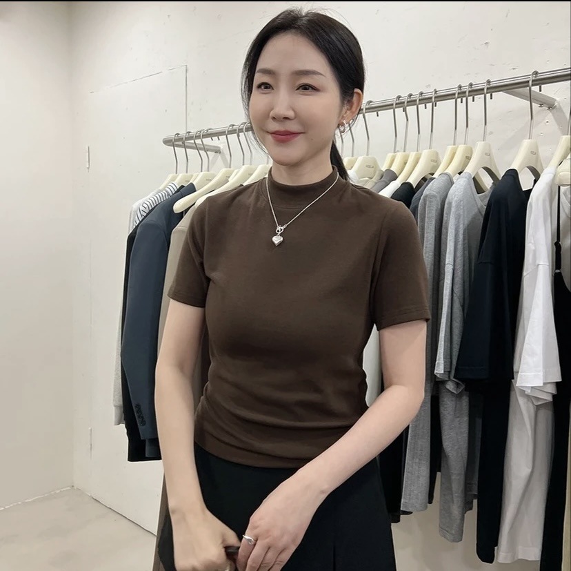 여름 보스 레이디 같은 스타일의 작은 스탠드 칼라 반팔 티셔츠 새로운 패션 다재다능한 탑 슬리밍 여성용 바닥 셔츠스토어 가기
