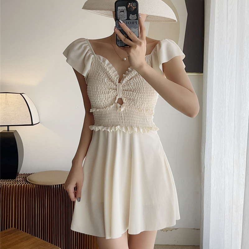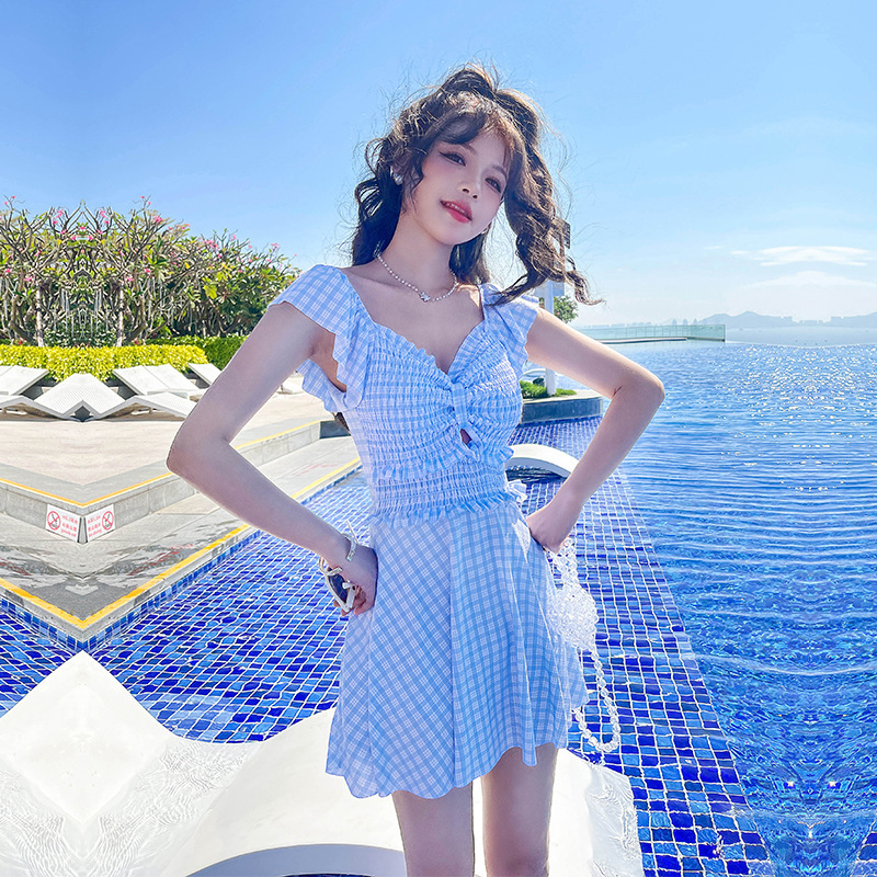 2025 신상 여성 원피스 수영복, 컬리지 스타일 인스, 살 커버 및 슬리밍, 여성 여름 보수적인 온천 수영복