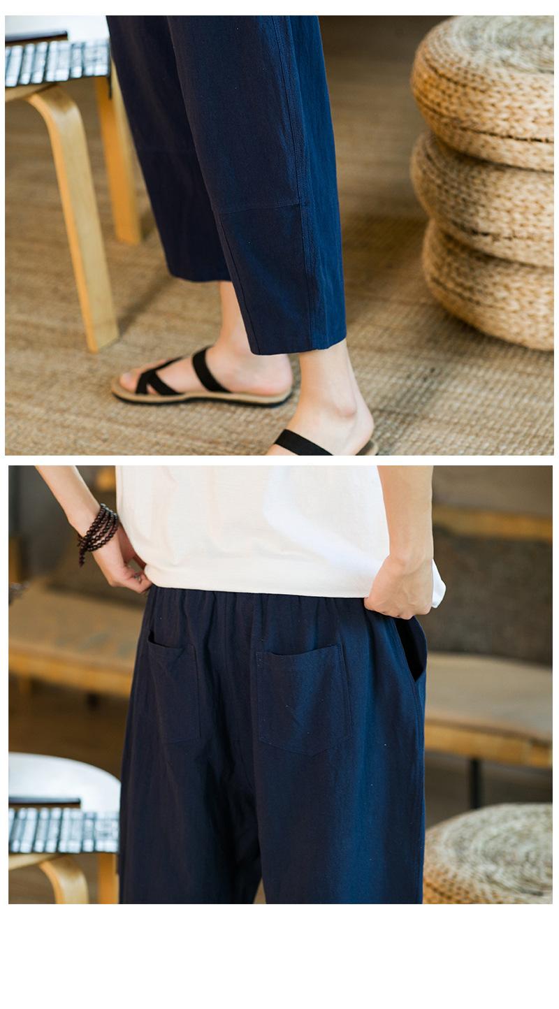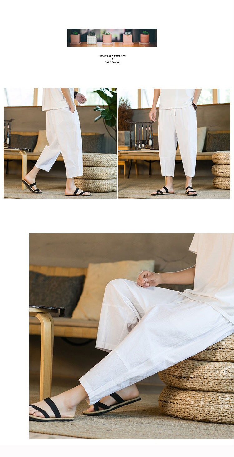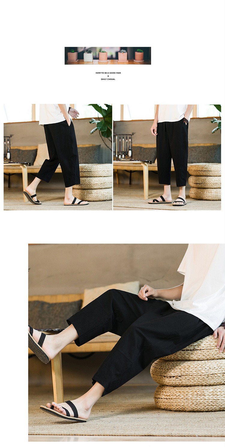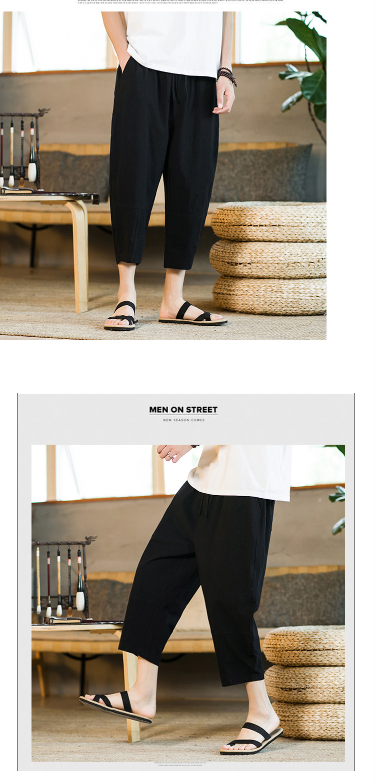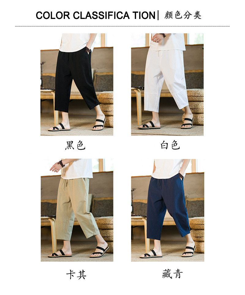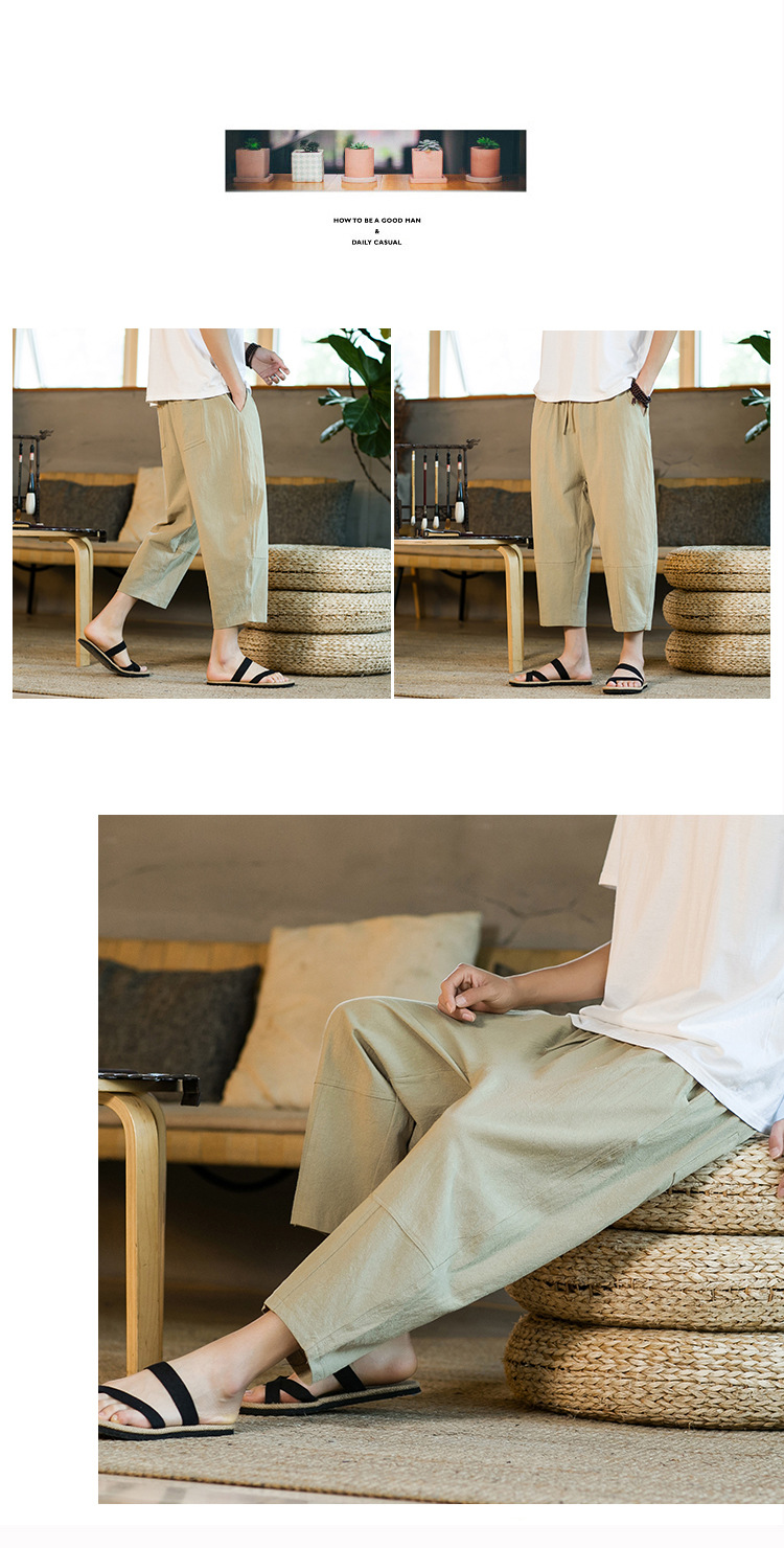 여름 캐주얼 바지 남자의 일본식 모든 매치 단색 면 린넨 느슨한 린넨 바지 한국 스타일 트렌디 스트레이트 남성 카프리 바지