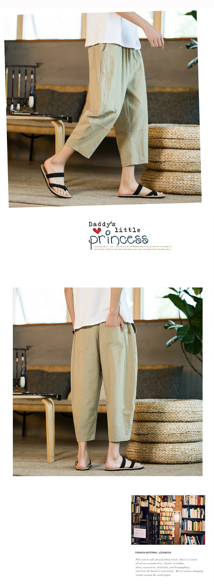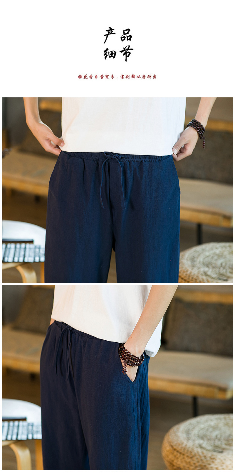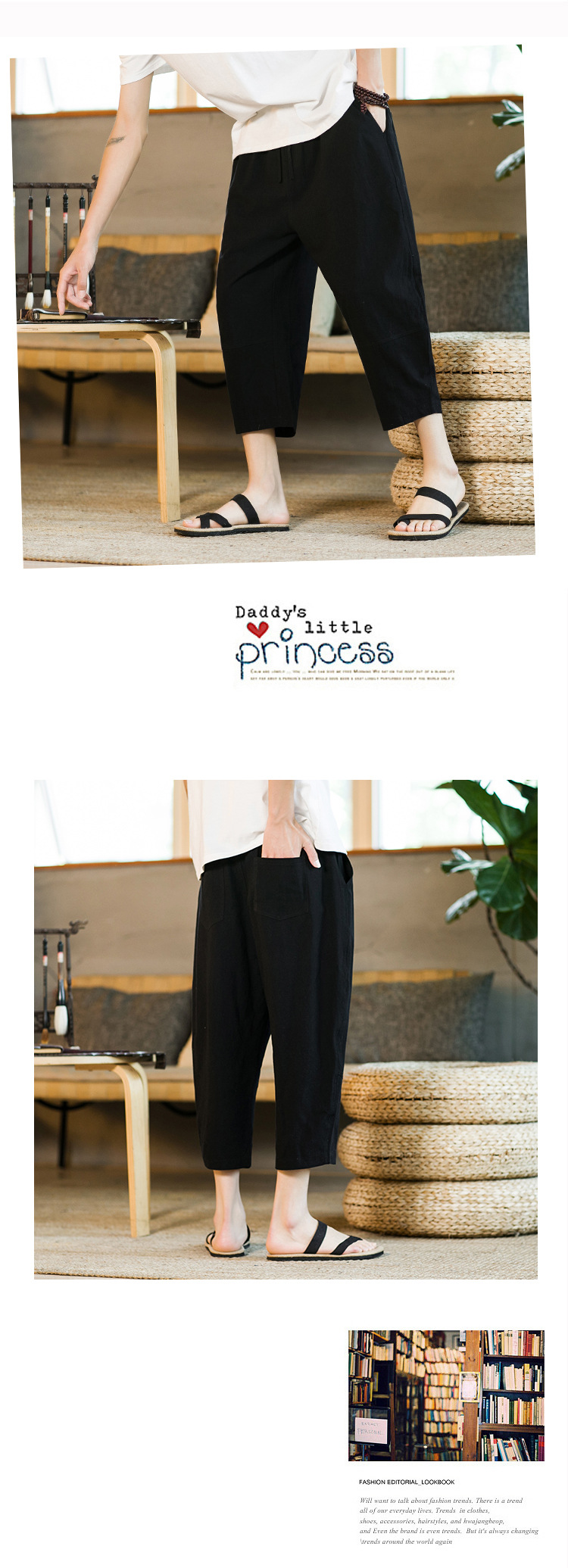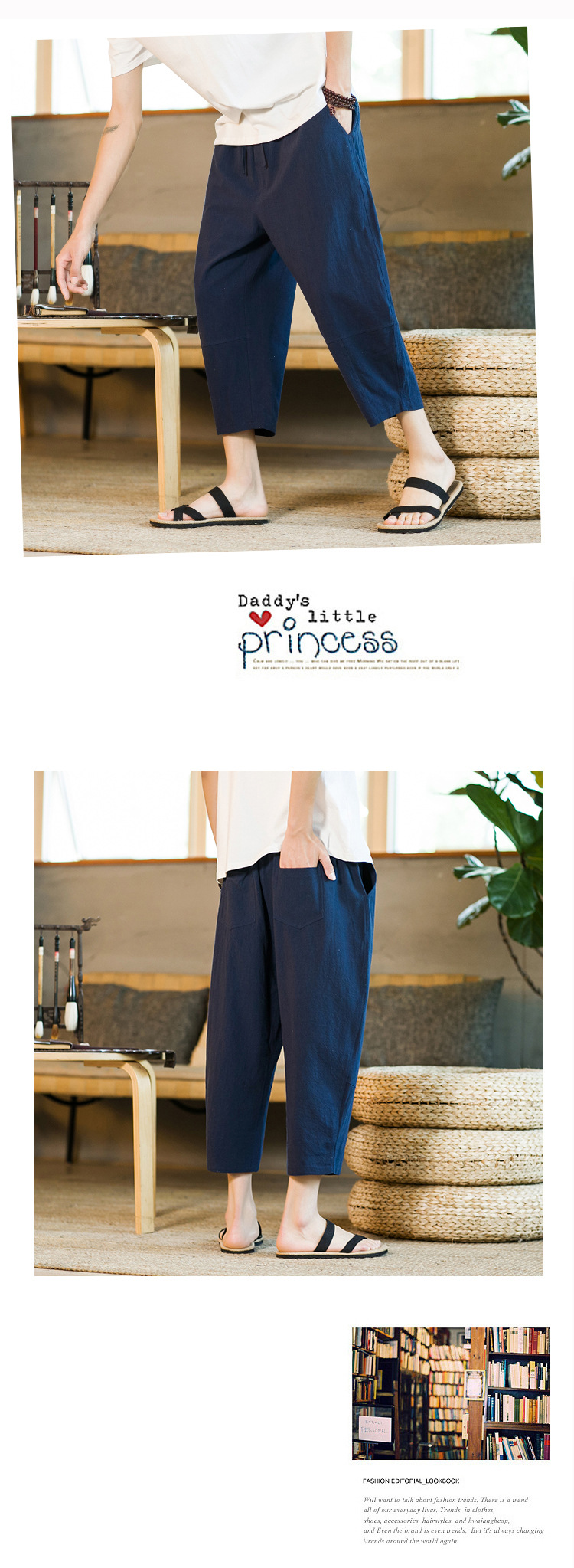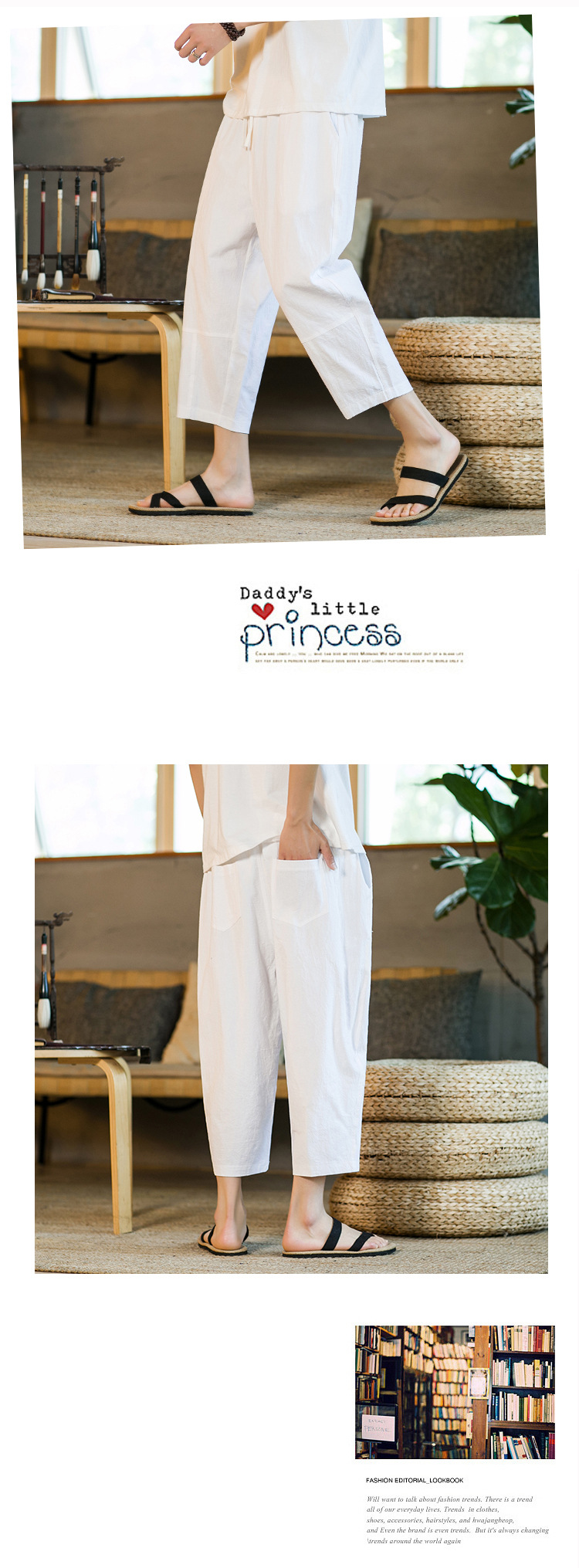 여름 캐주얼 바지 남자의 일본식 모든 매치 단색 면 린넨 느슨한 린넨 바지 한국 스타일 트렌디 스트레이트 남성 카프리 바지
