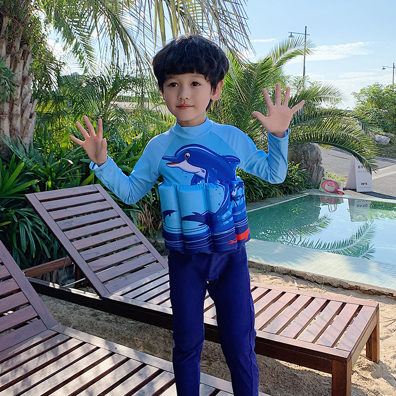 어린이 부력 수영복 여아 원피스 아기 돌고래 수영복 긴팔 자외선 차단제 서핑 세트 트렌디한 여아 부력 수영복