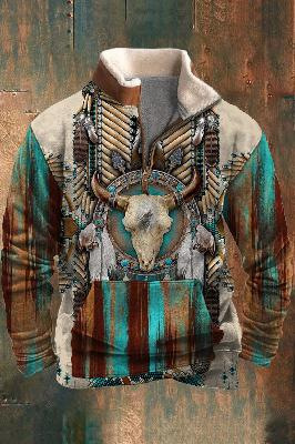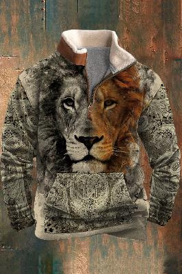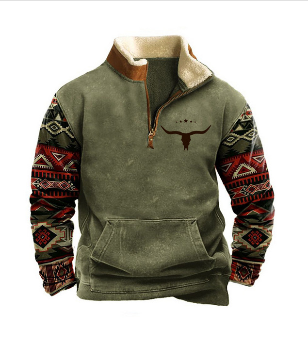 아마존 봄과 가을 새로운 도착 남자의 긴 소매 반 지퍼 인쇄 캐주얼 패션 유럽과 미국의 유행 재킷 코트
