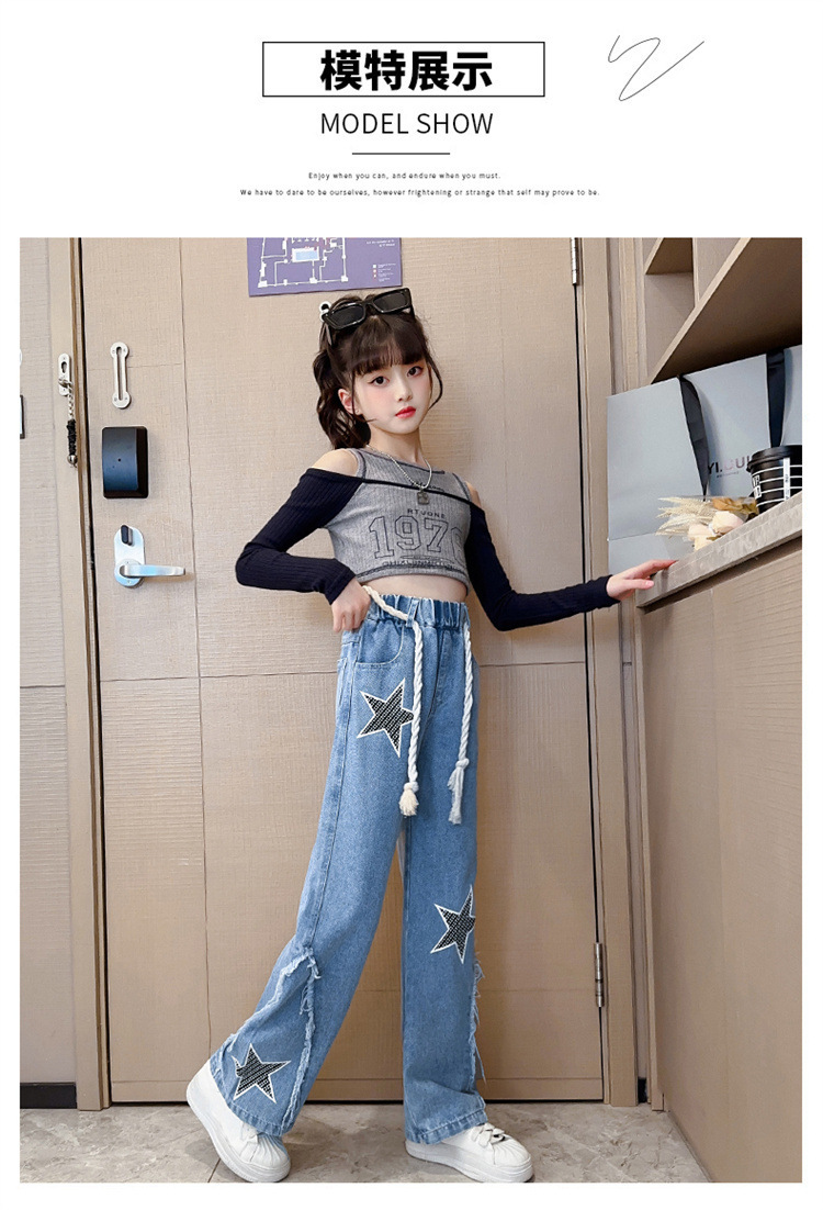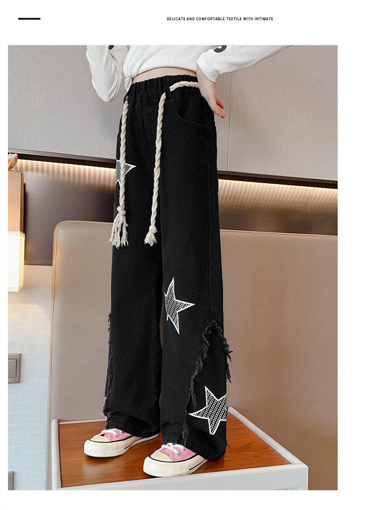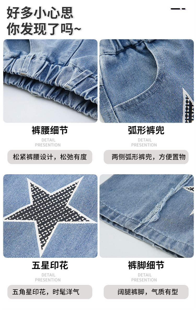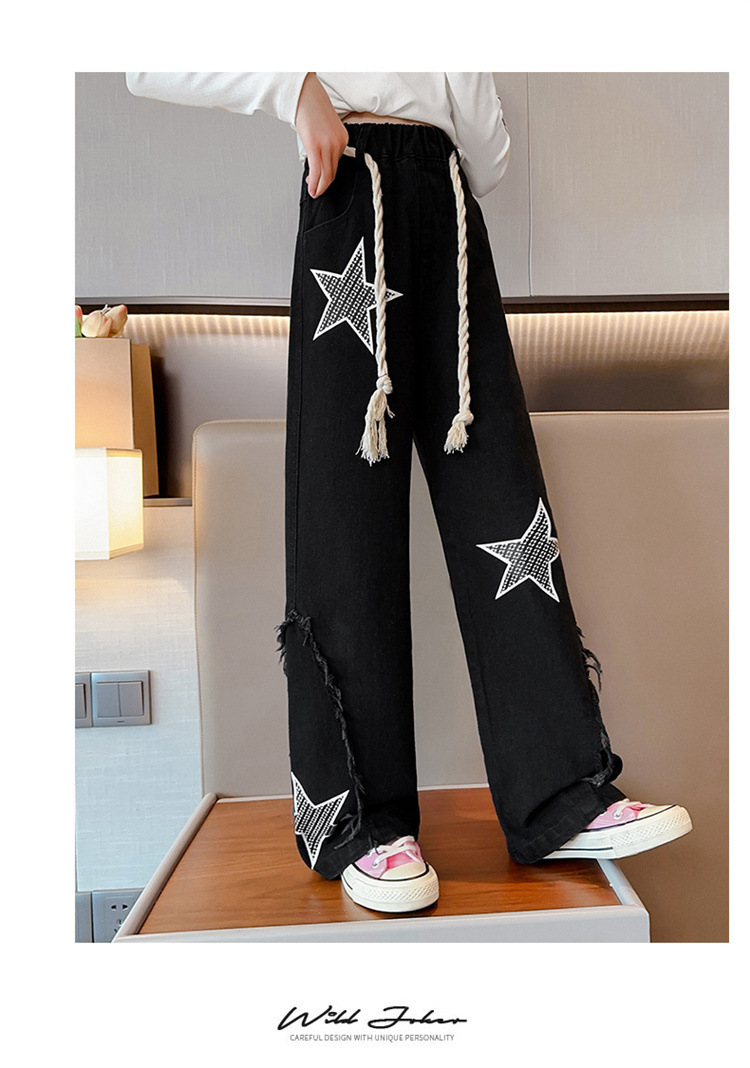 2025년 가을 신상 여아 데님 팬츠, 한국 스타일 중대형 아동용 오각형 데님 와이드 팬츠, 트렌디한 원피스 도매스토어 가기