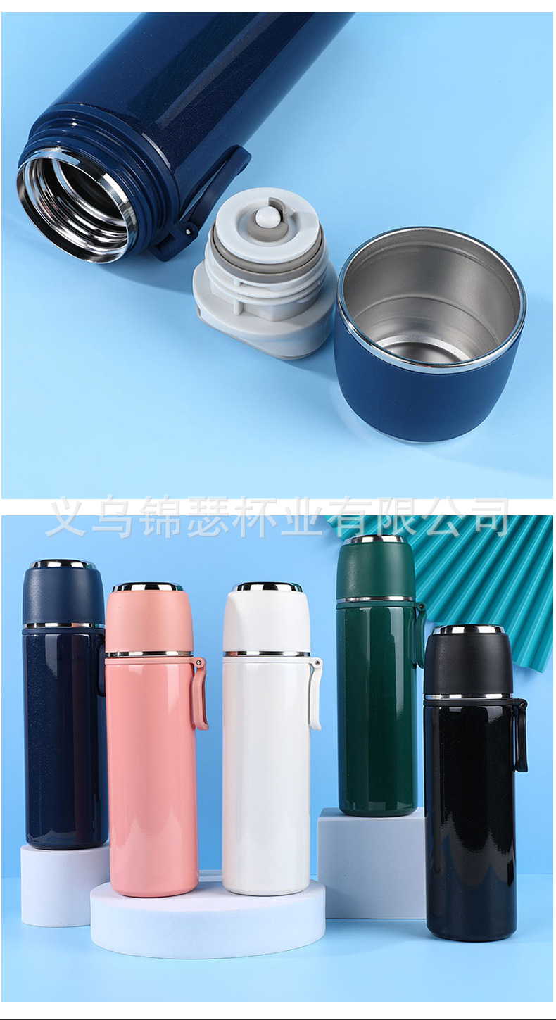 뉴 스테인레스 손잡이 단열 컵 휴대용 커플 학생 컵 강철 뚜껑 단열 냄비 도매 로고
