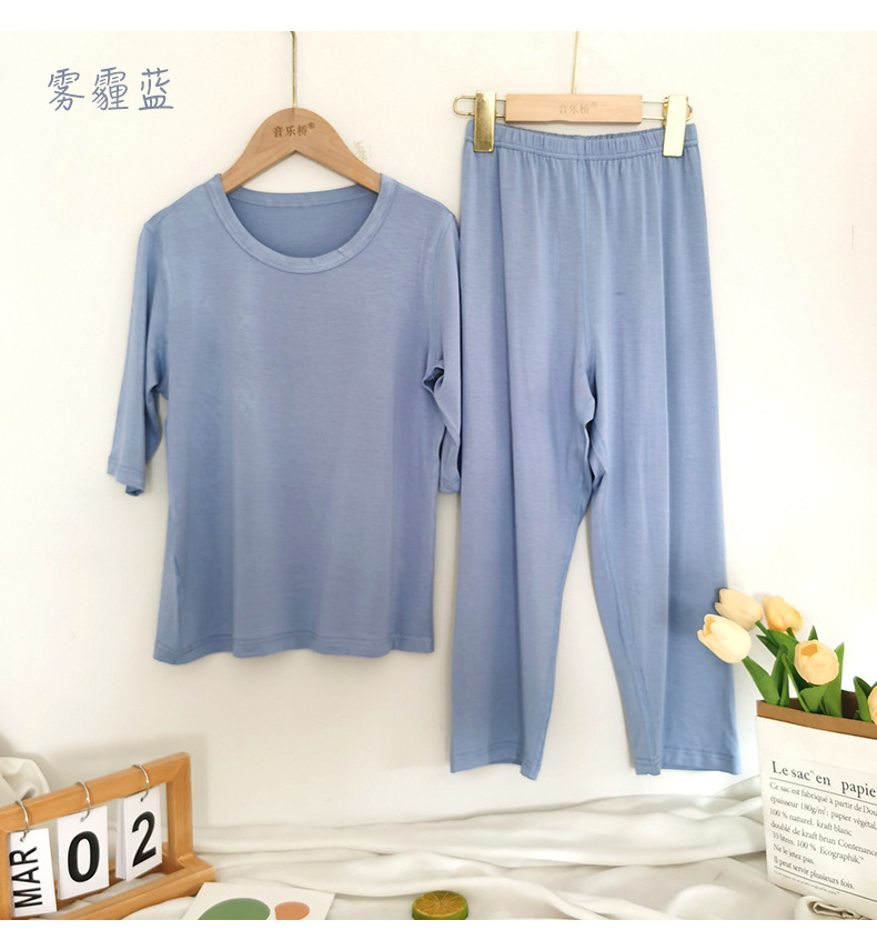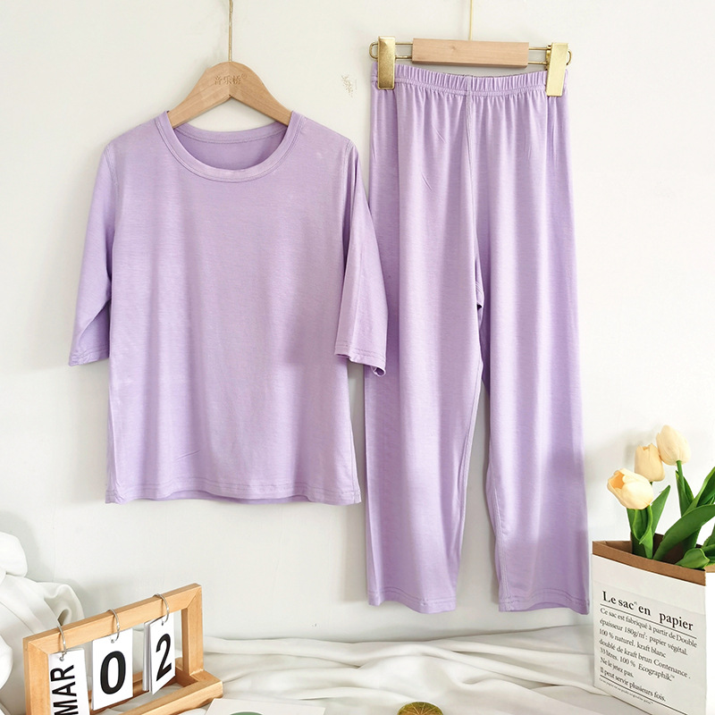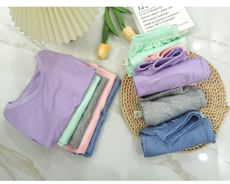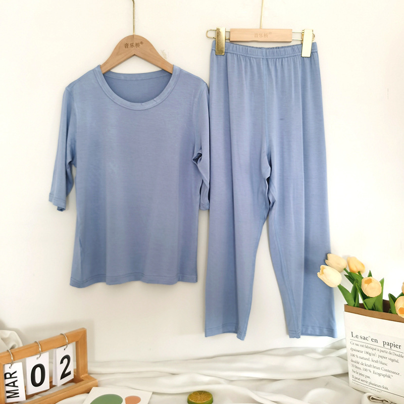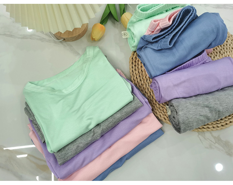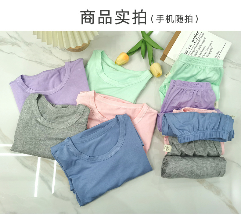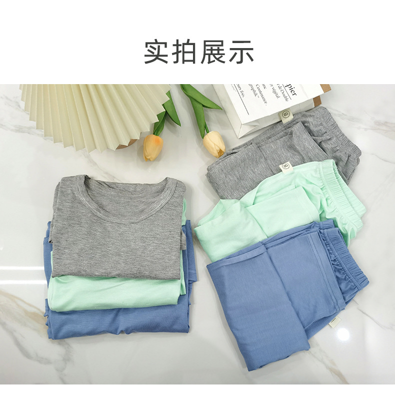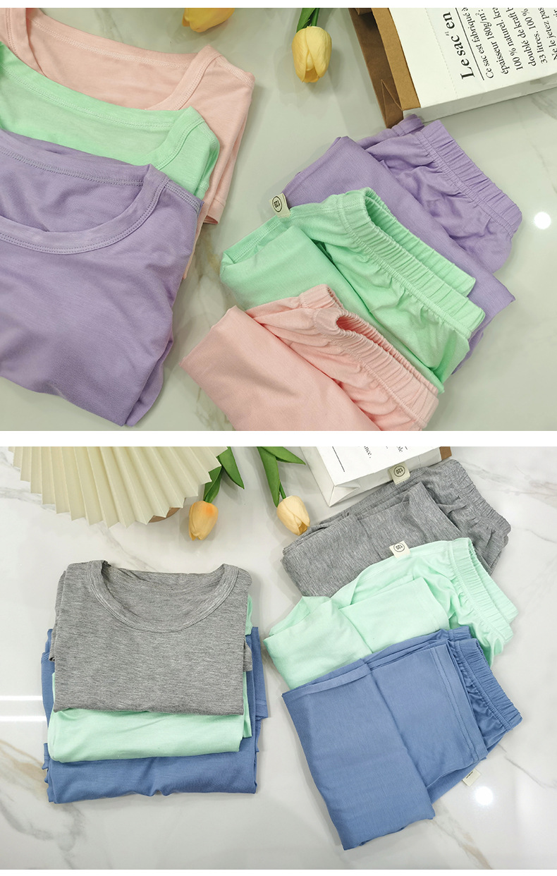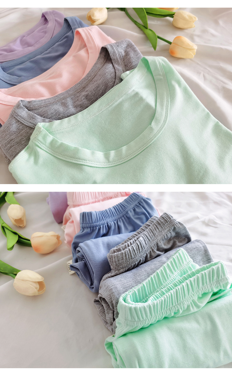 여아용 무봉제 잠옷, 남아용 홈웨어, 7부 소매 긴바지, 아동용 단색 모달 밀리터리 스타일, 외출복으로도 착용 가능