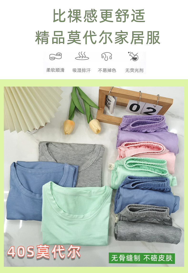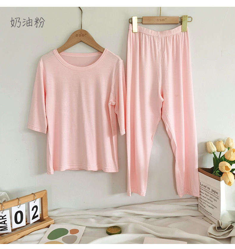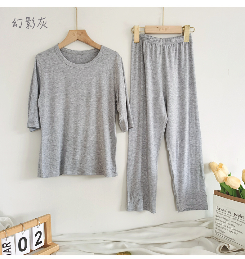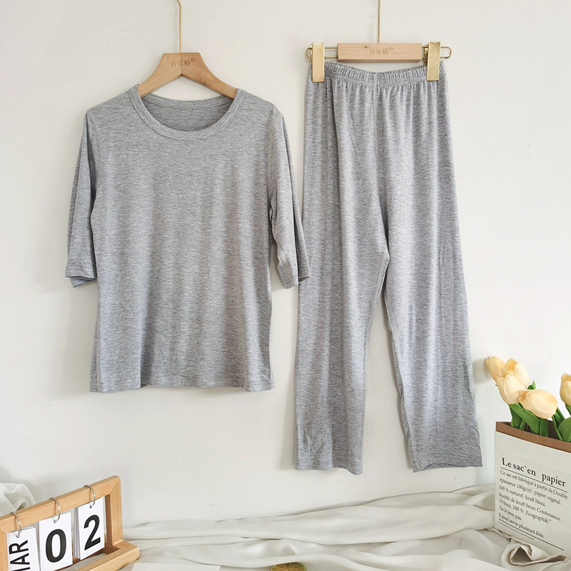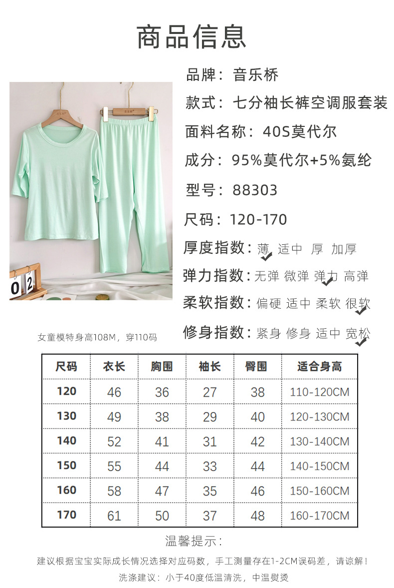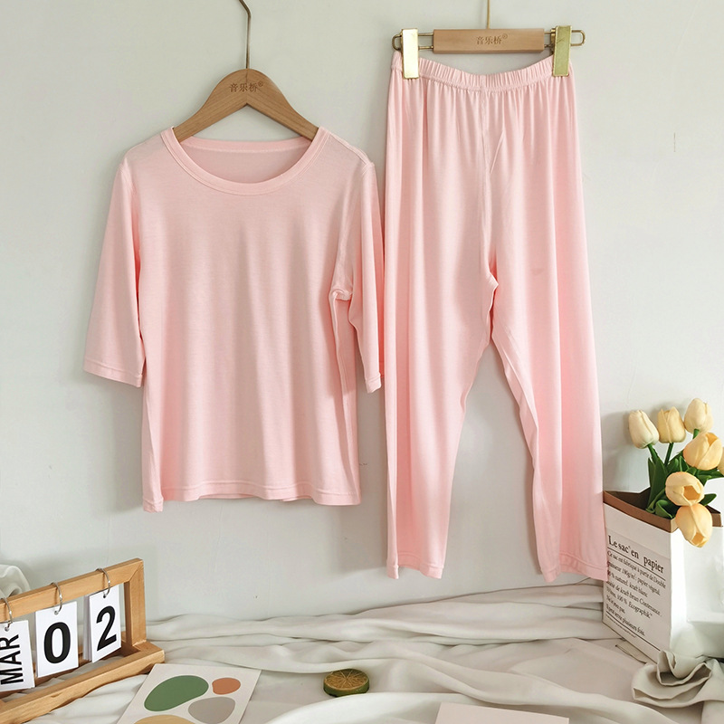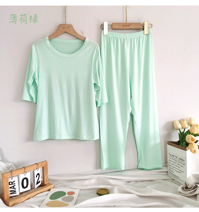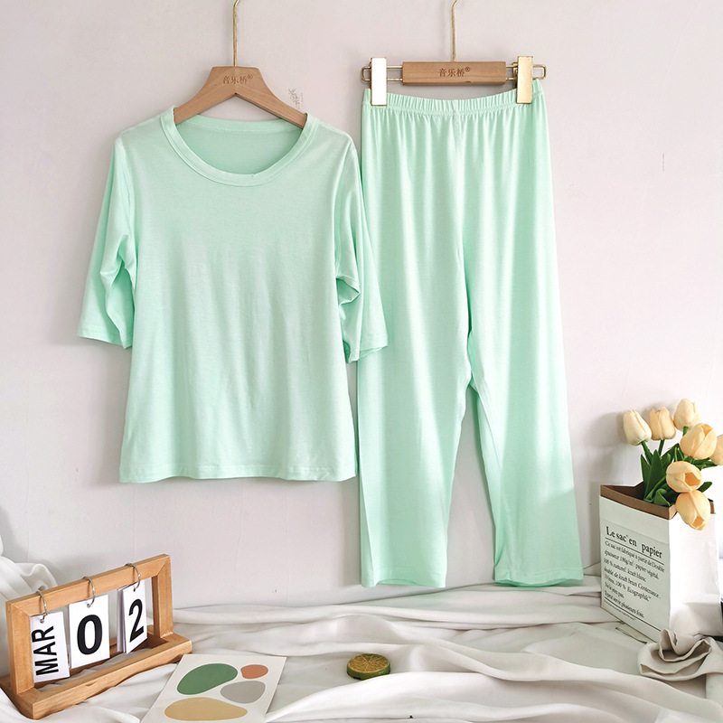 여아용 무봉제 잠옷, 남아용 홈웨어, 7부 소매 긴바지, 아동용 단색 모달 밀리터리 스타일, 외출복으로도 착용 가능