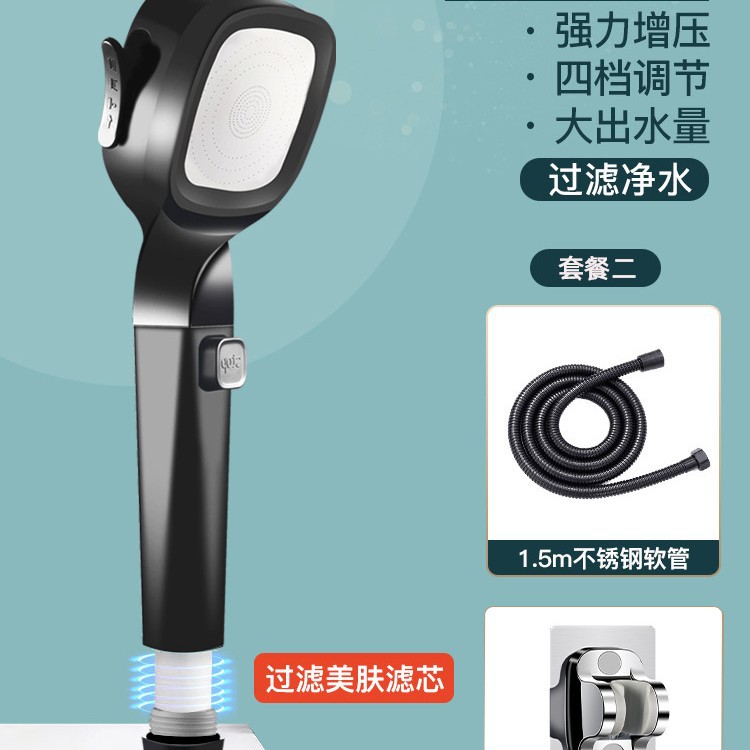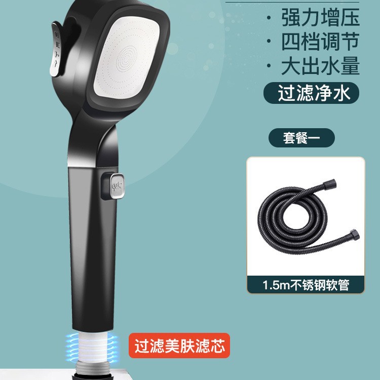 • 4 단 워터스톱 샤워 [블랙 필터] + 1.5 암호화 튜브 [블랙]]