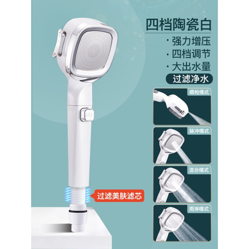 • 4 단 워터스톱 샤워 [전기 도금 흰색-필터 없음] + 1.5 암호화 튜브