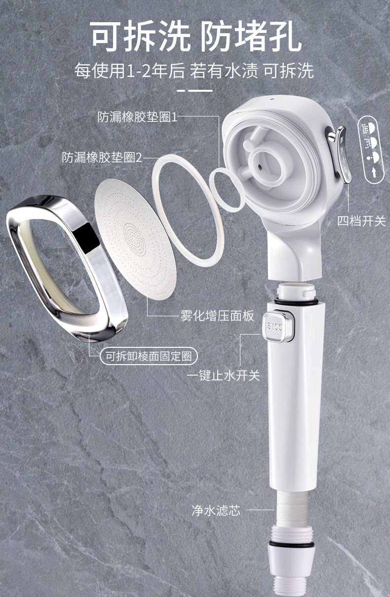 • 4 단 워터스톱 샤워 [전기도금 실버 필터] + 1.5 암호화 튜브