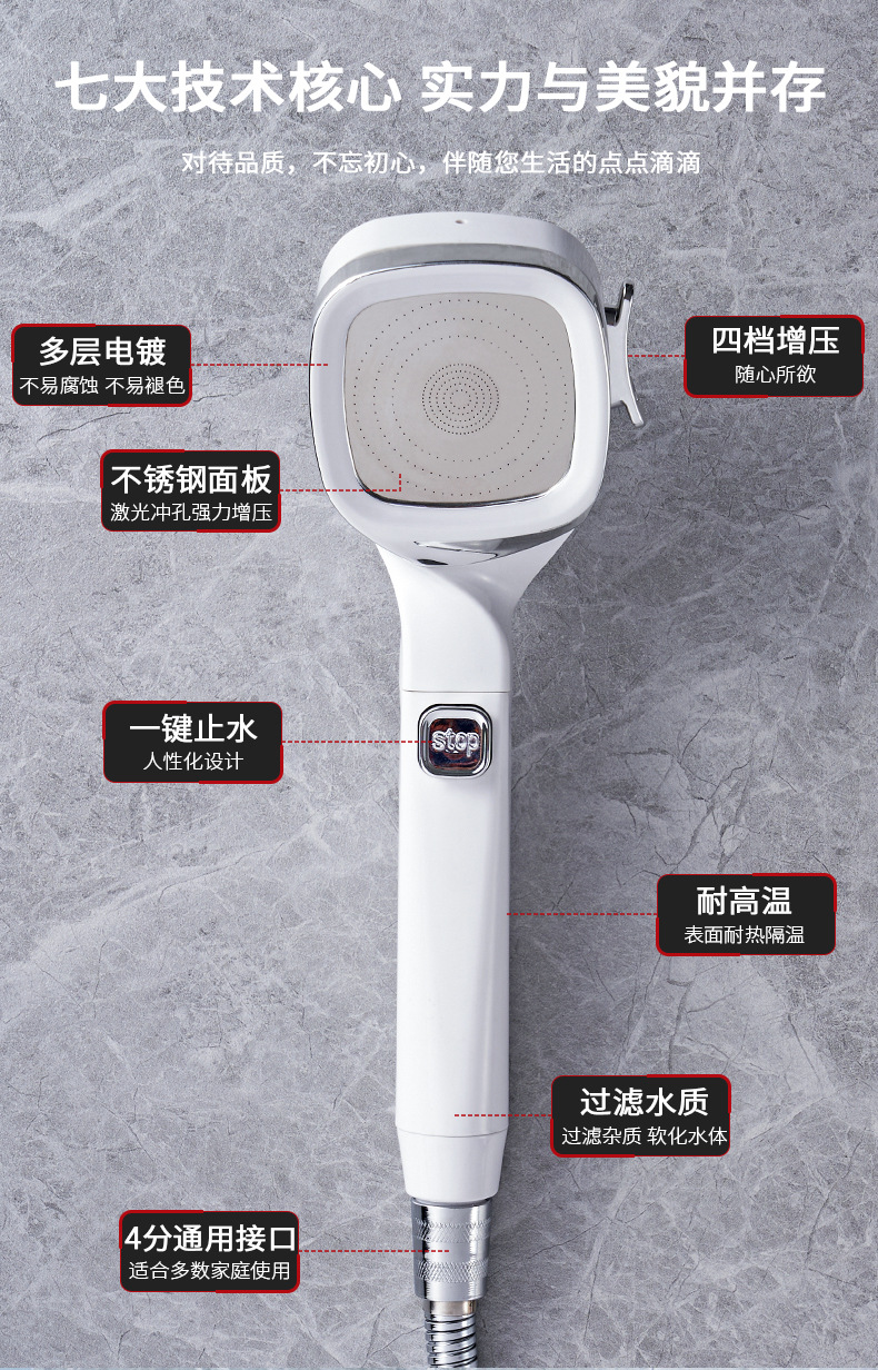 • 4 단 워터스톱 샤워 [전기도금 백색 필터] + 1.5 암호화 튜브 + 대형 패널 브래킷