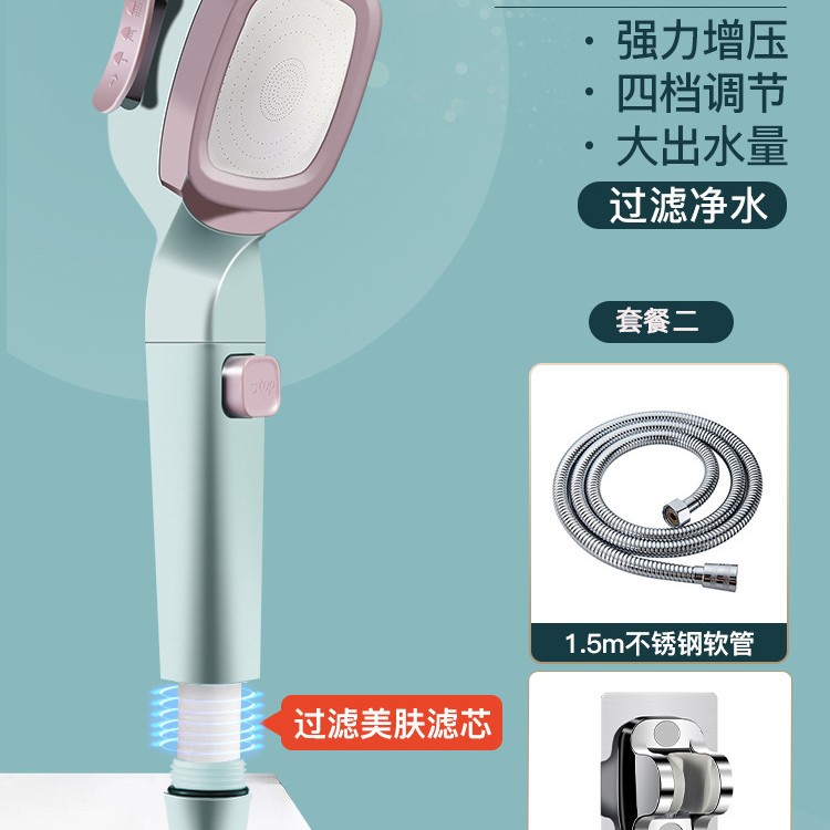 • 4 단 워터스톱 샤워 [핑크 Blue-필터 없음] + 1.5 암호화 튜브