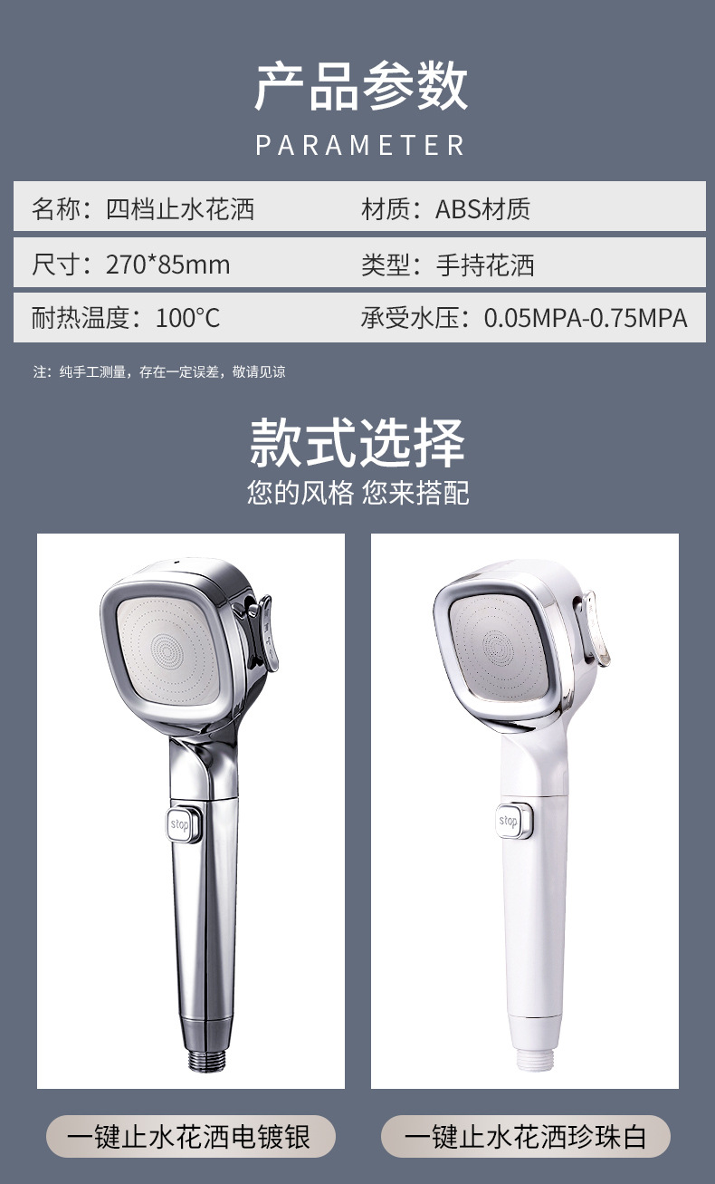 • 4 단 워터스톱 샤워 [전기 도금 흰색 필터 없음] + 1.5 암호화 튜브 + 대형 패널 브래킷