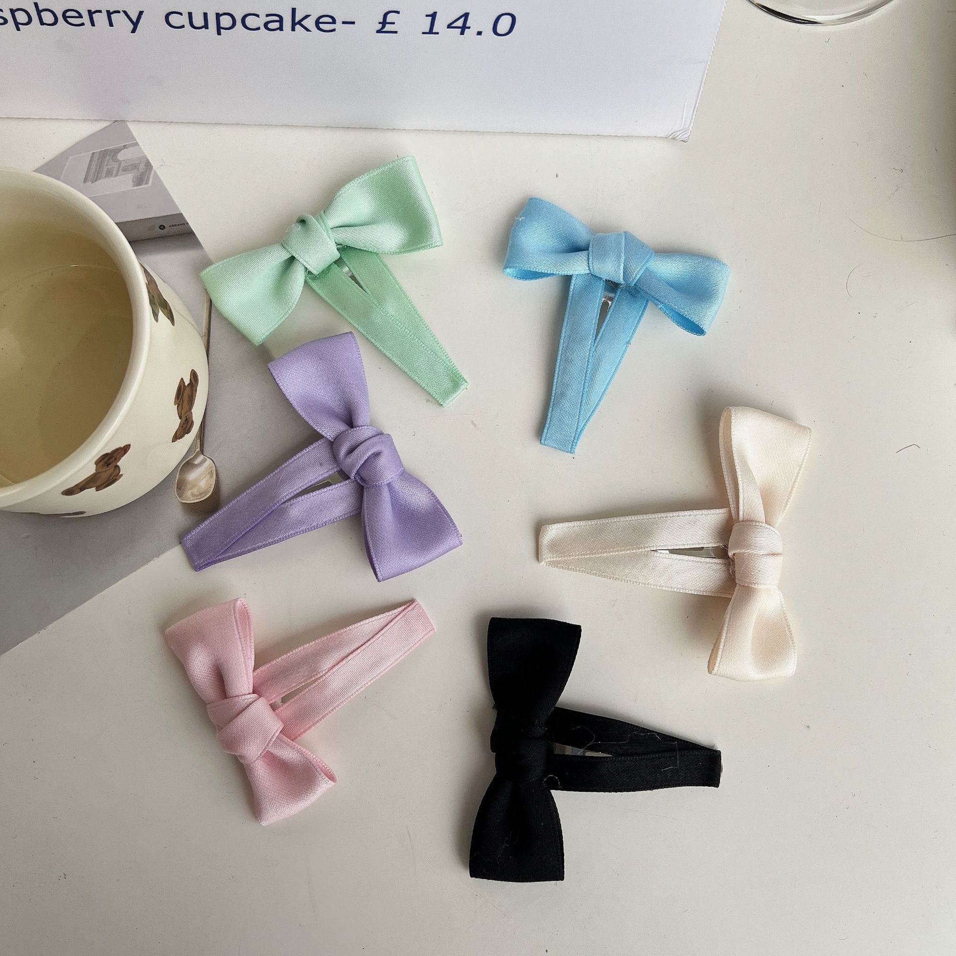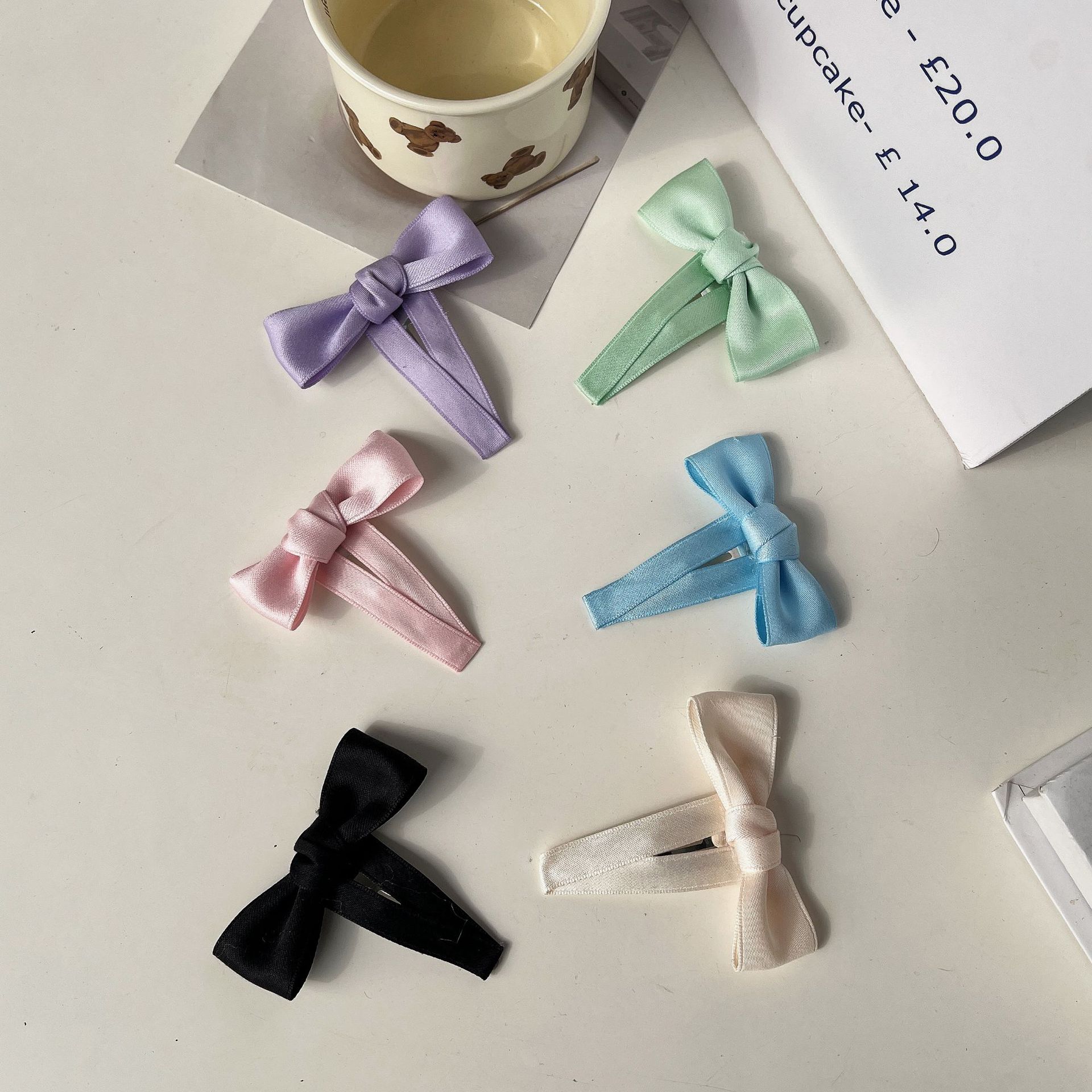 한국어 달콤한 색상 새틴 활 머리핀 소녀의 앞머리 클립 BB 클립 머리핀 사이드 클립 깨진 머리핀 어린이