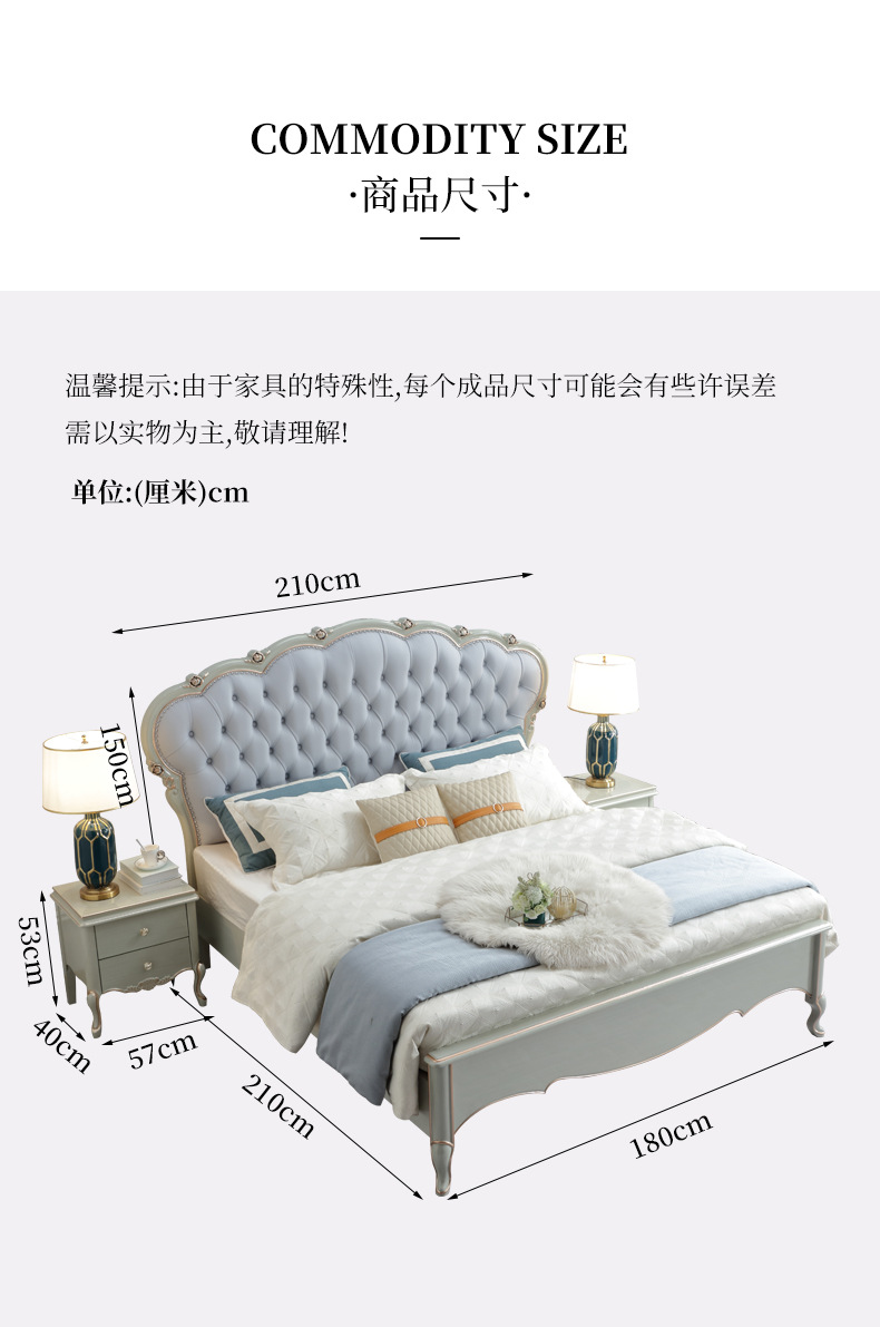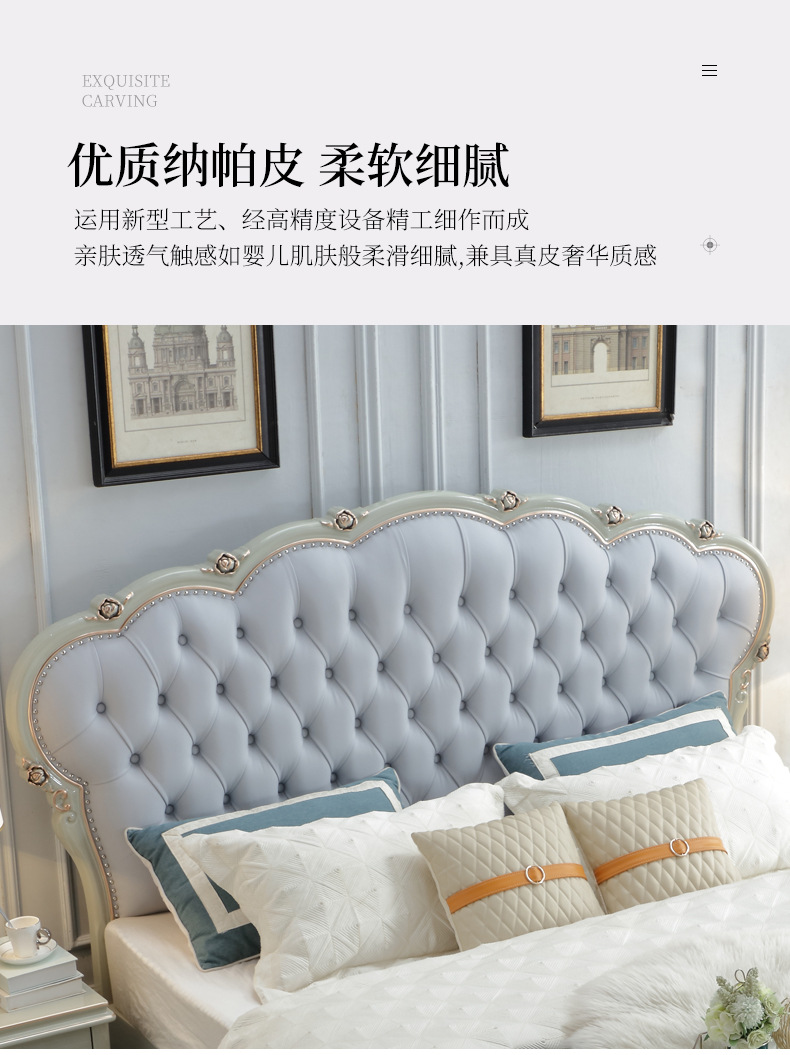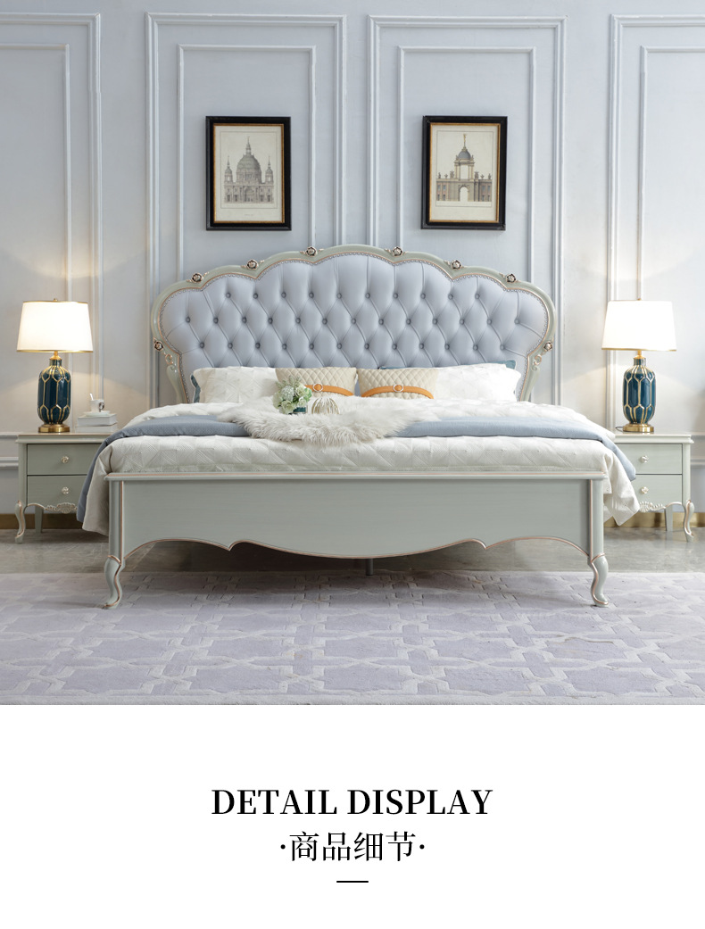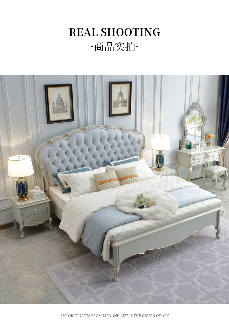 프랑스 가구 고급 고급 유럽 단단한 나무 가죽 아트 침대 공주 침대 마스터 침실 1.8m 빌라 대형 평면 웨딩 침대스토어 가기