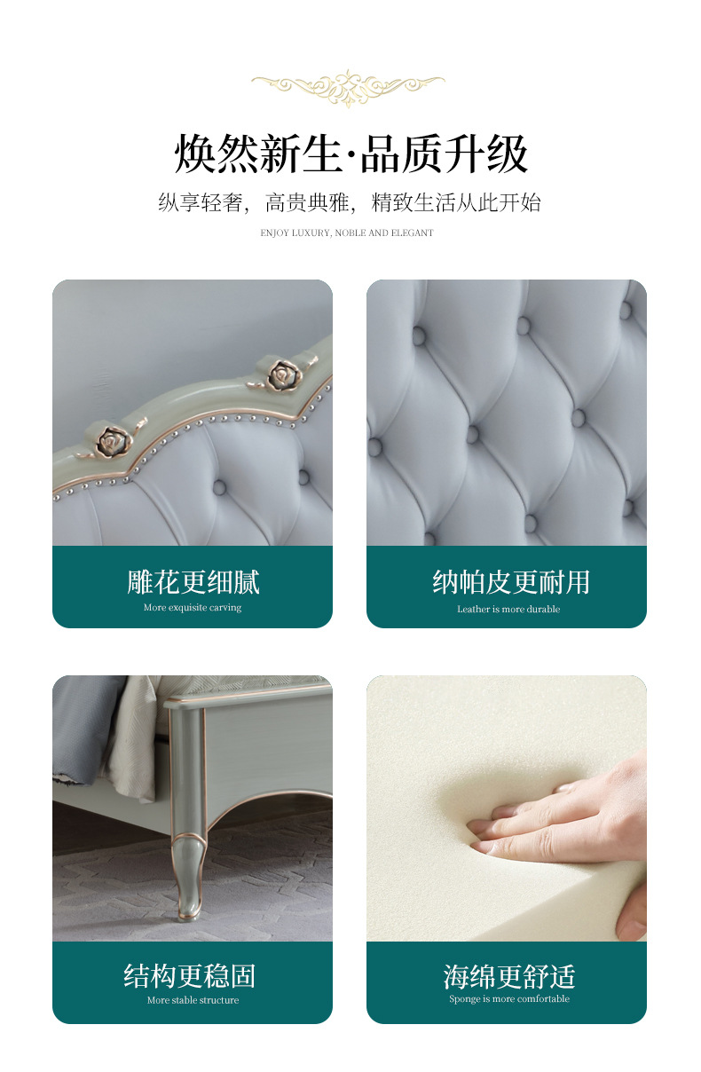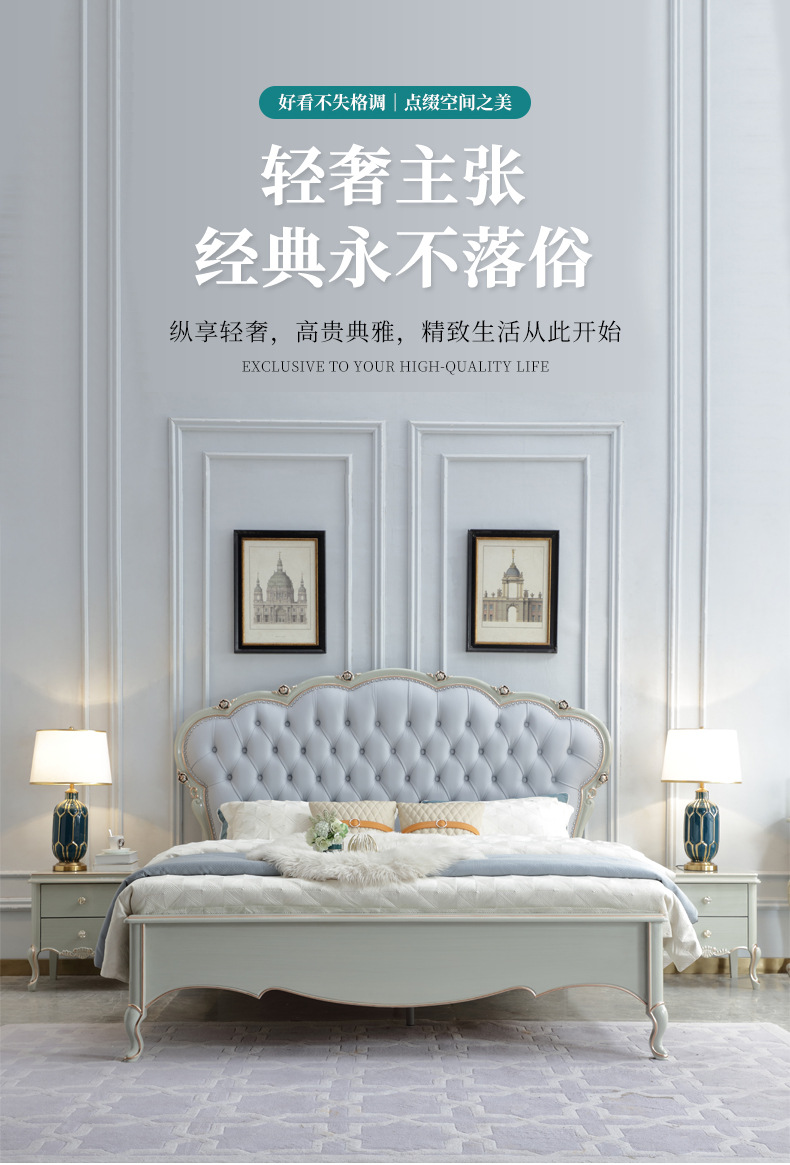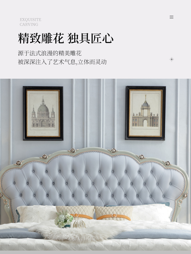 프랑스 가구 고급 고급 유럽 단단한 나무 가죽 아트 침대 공주 침대 마스터 침실 1.8m 빌라 대형 평면 웨딩 침대스토어 가기