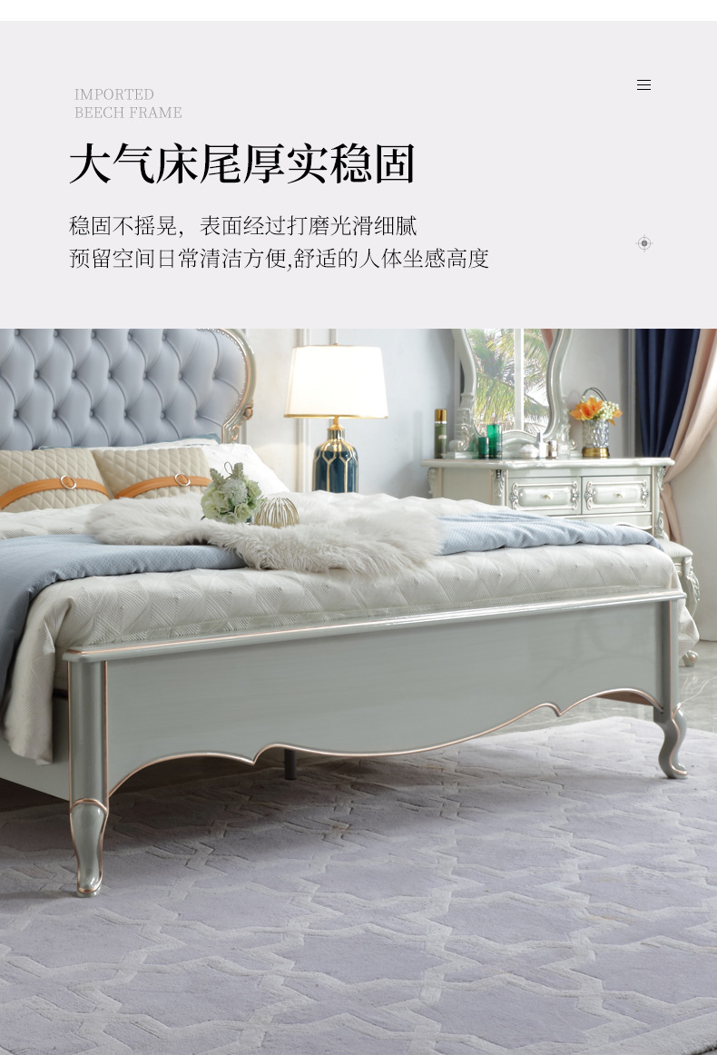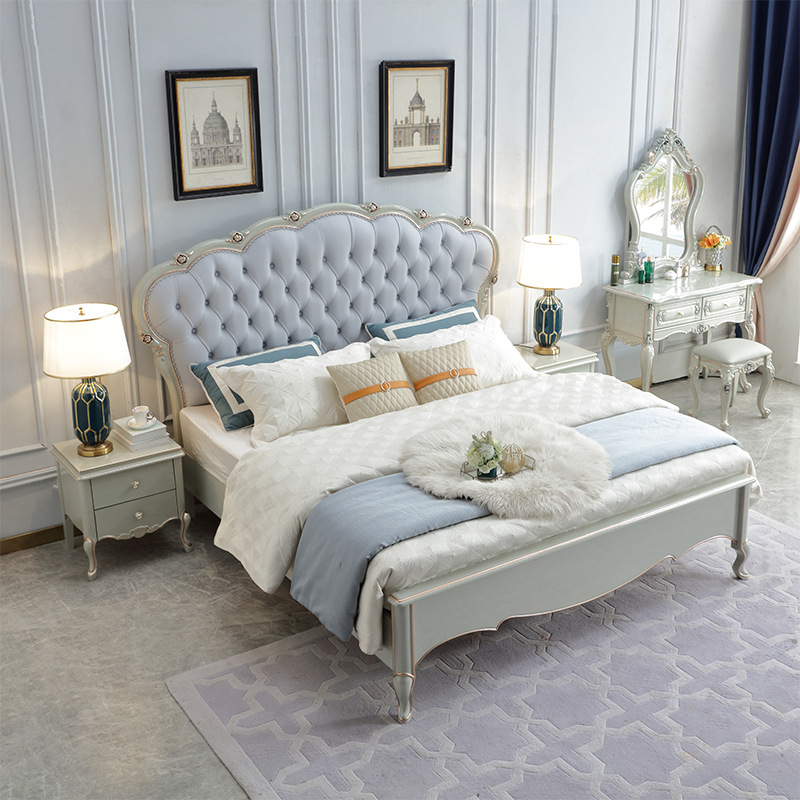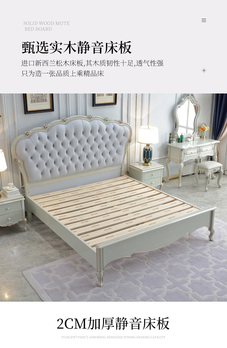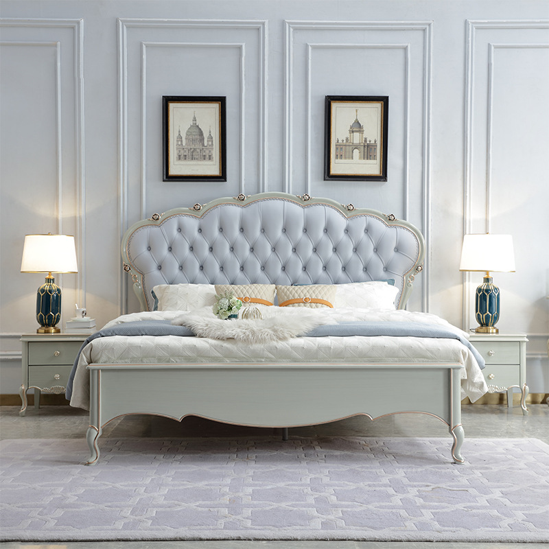 프랑스 가구 고급 고급 유럽 단단한 나무 가죽 아트 침대 공주 침대 마스터 침실 1.8m 빌라 대형 평면 웨딩 침대