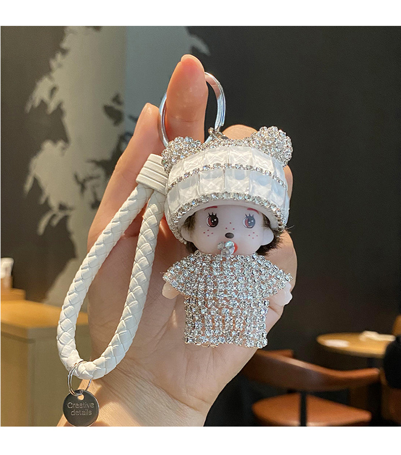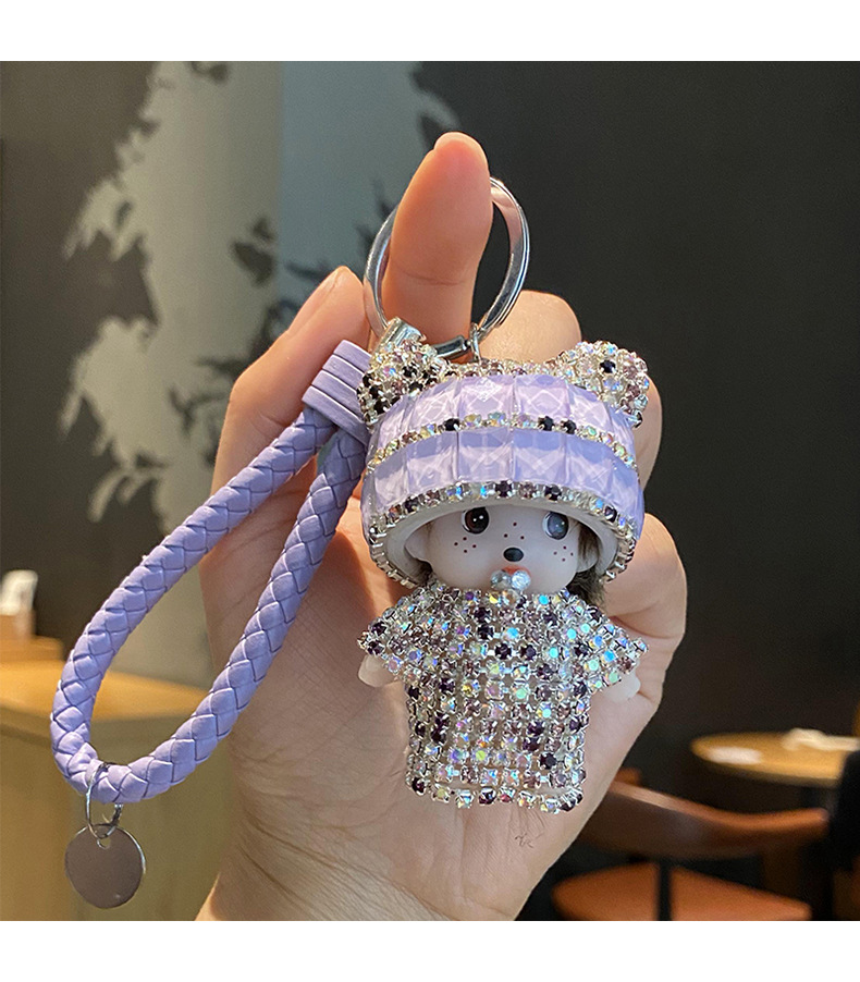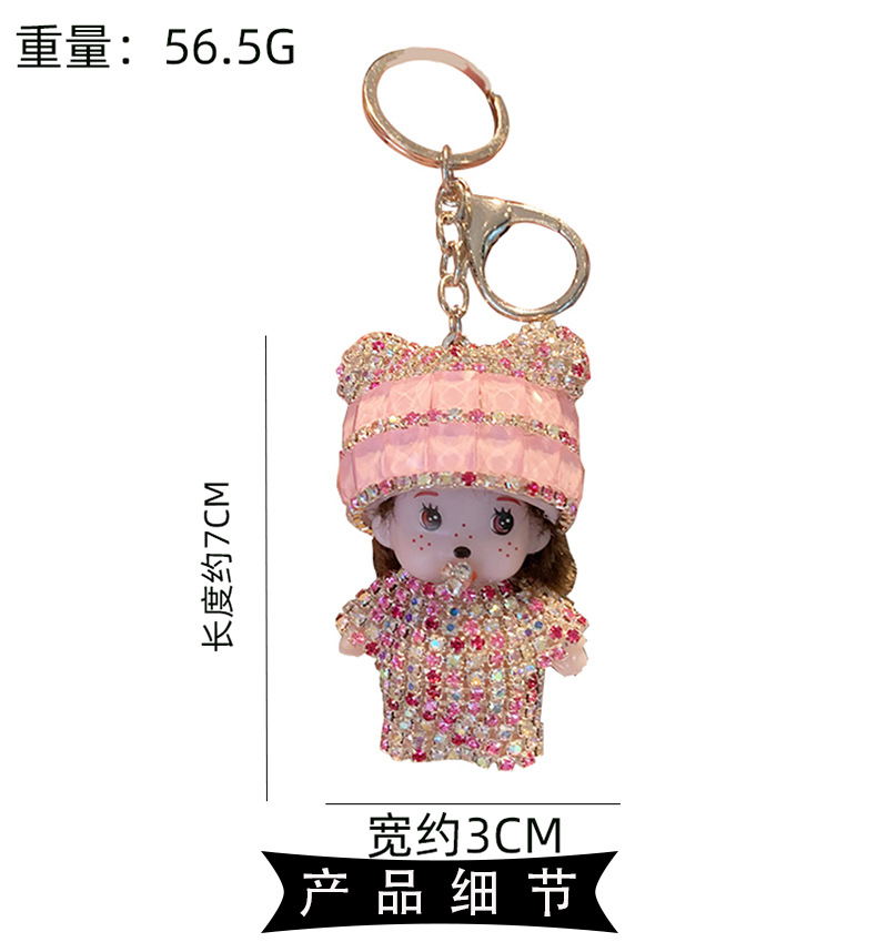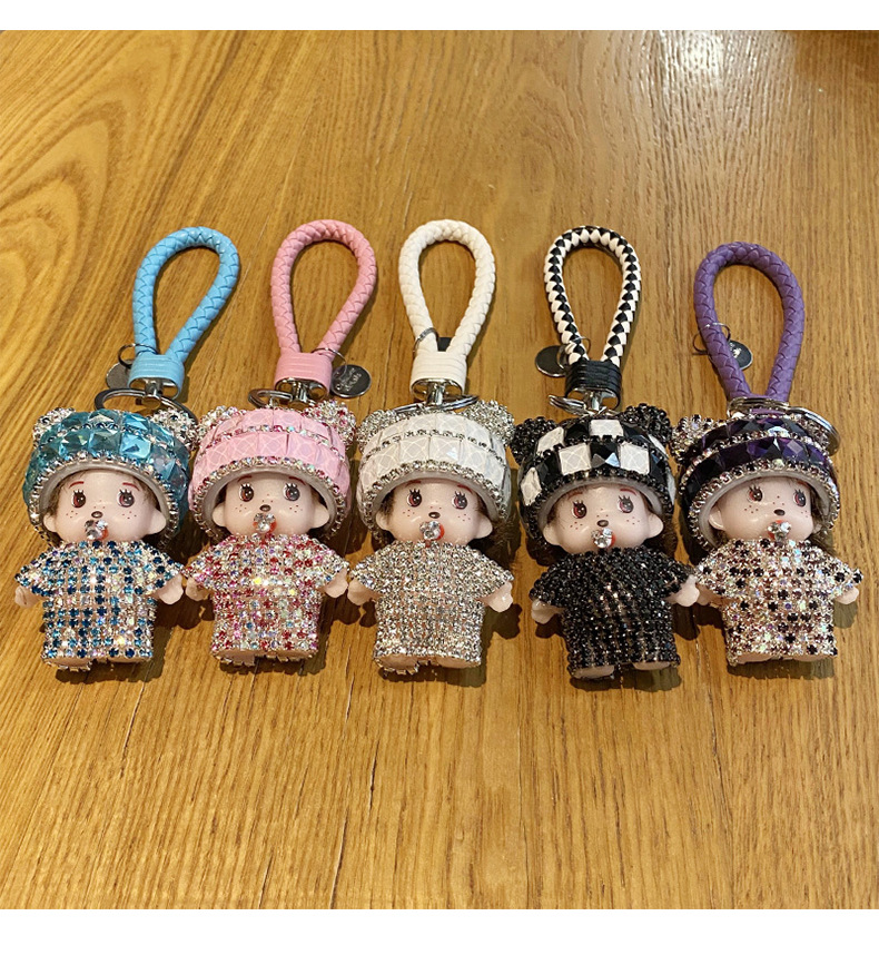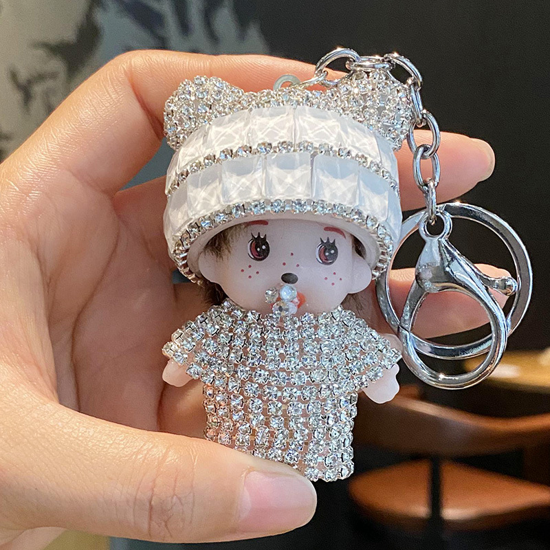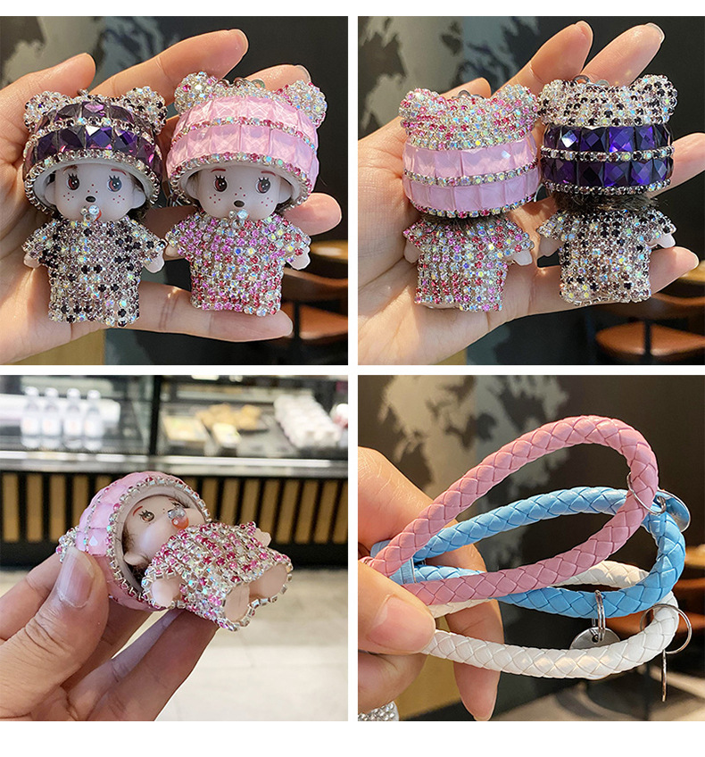 크리 에이 티브 다이아몬드 박힌 Mengqiqi 인형 열쇠 고리 여성 한국 귀여운 봉제 인형 자동차 열쇠 고리 펜던트 선물