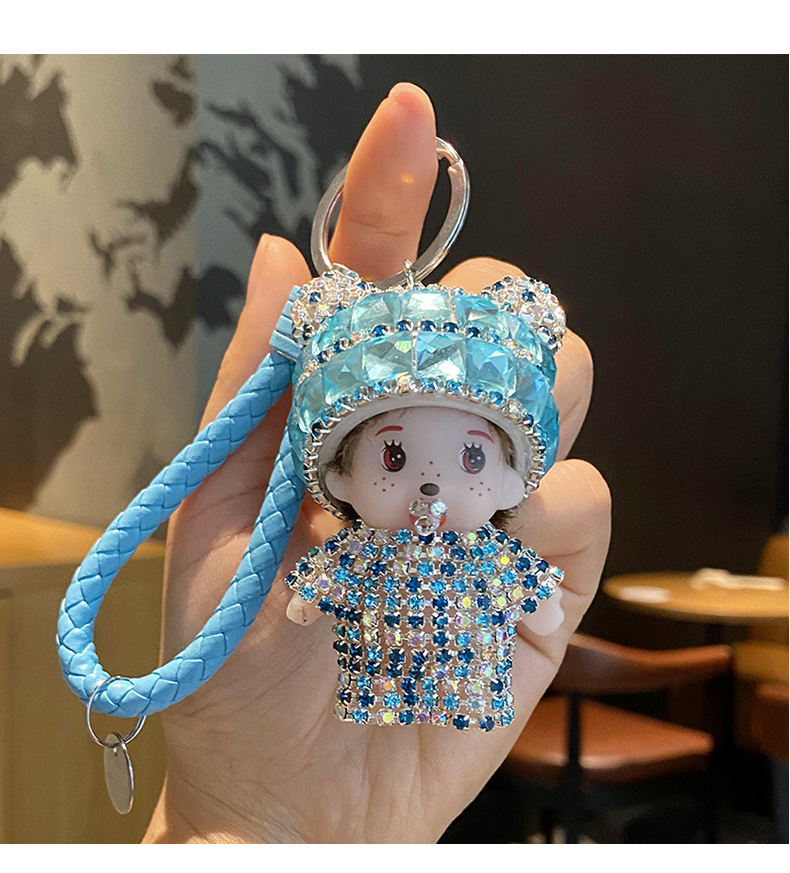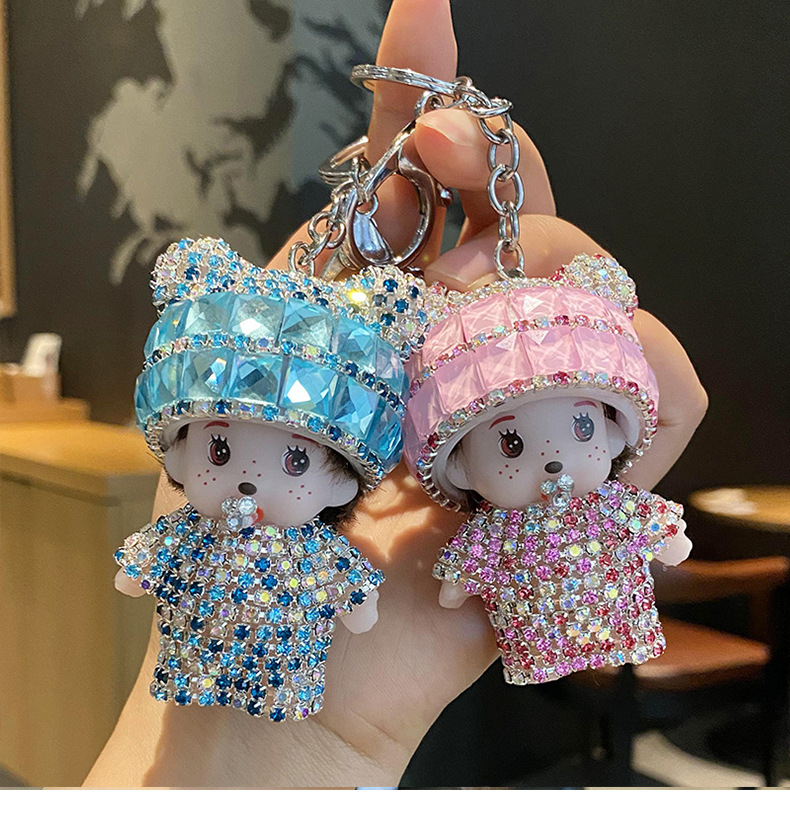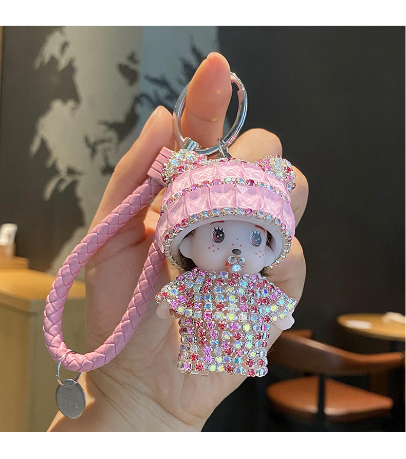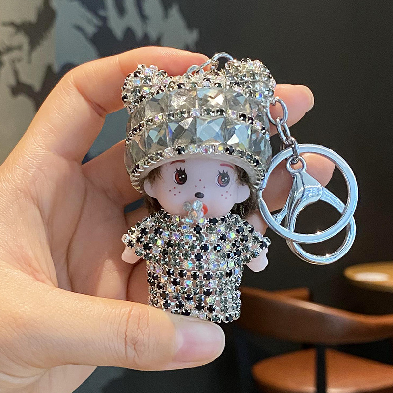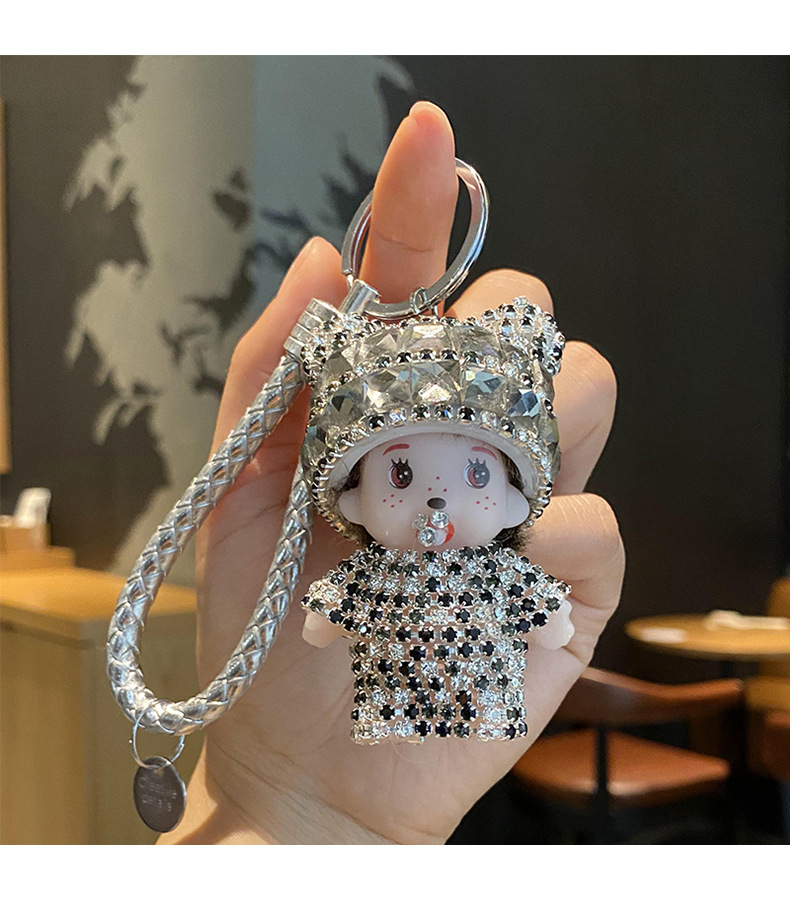 크리 에이 티브 다이아몬드 박힌 Mengqiqi 인형 열쇠 고리 여성 한국 귀여운 봉제 인형 자동차 열쇠 고리 펜던트 선물