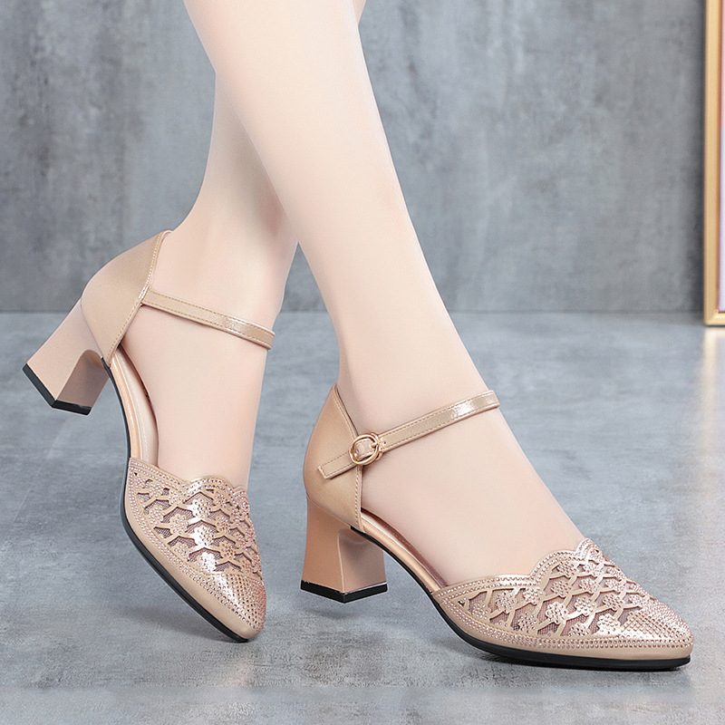 여성 여름 2023 새로운 여성 신발 중공 메쉬 통기성 중년 어머니 신발 중공 샌들