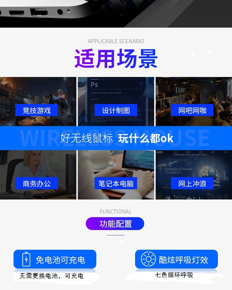유선 eSports 마우스 무선 USB 충전 블루투스 듀얼 모드 음소거 마우스 사무실 게임 발광 마우스스토어 가기