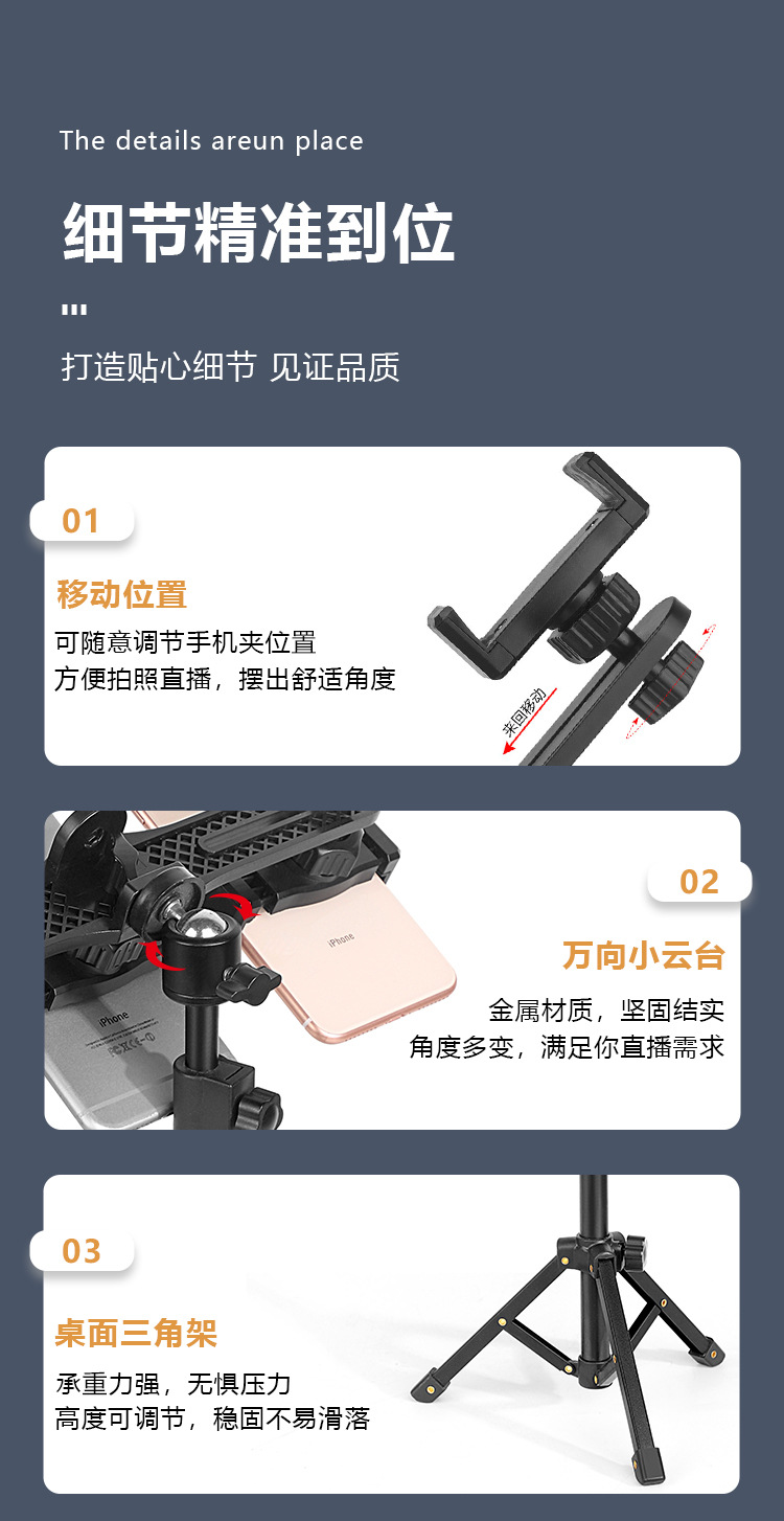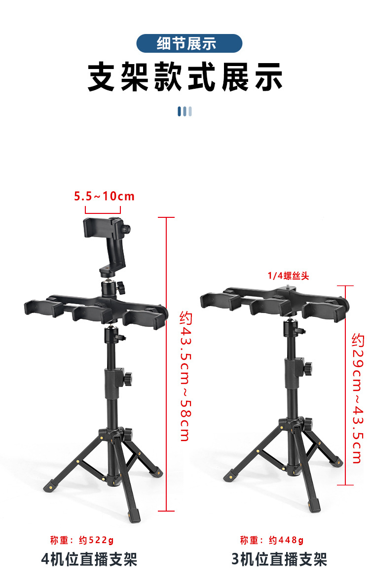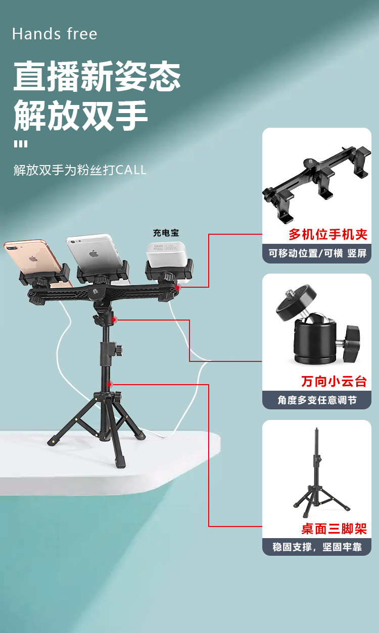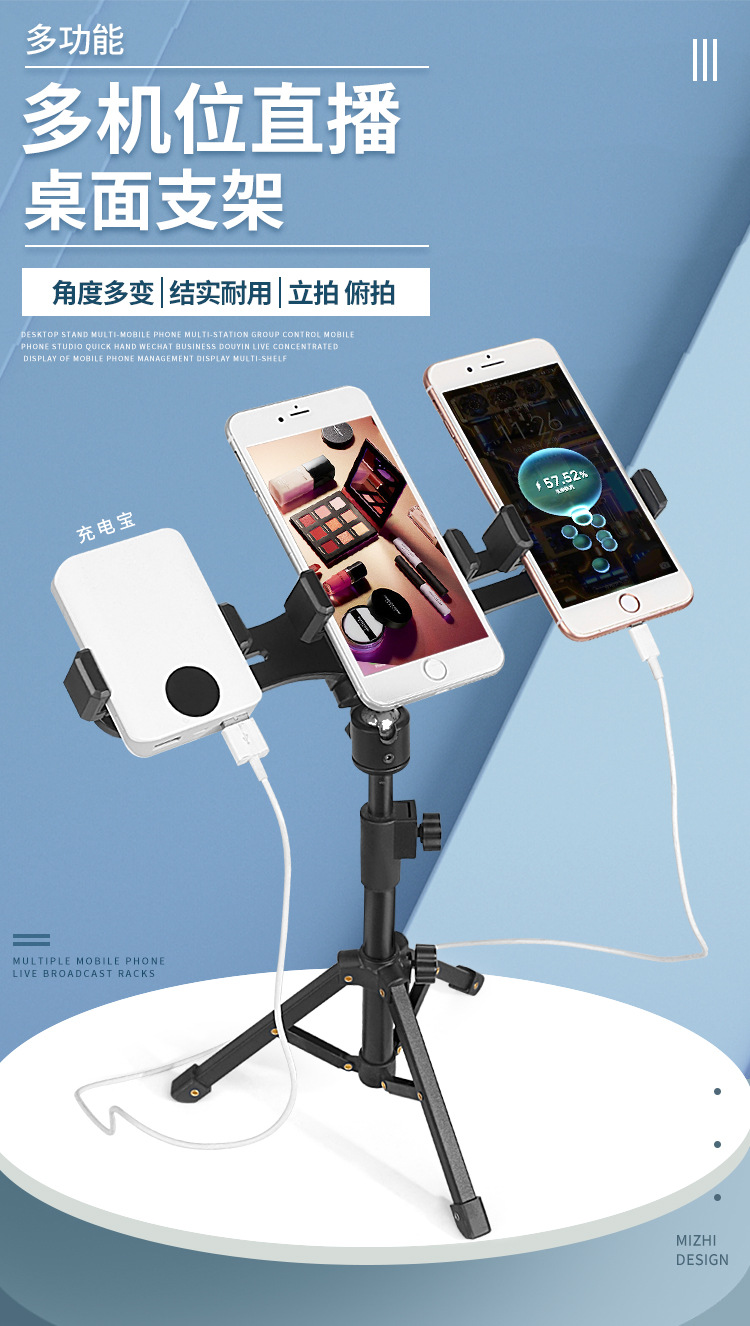 라이브 방송 브래킷 3 위치 휴대 전화 데스크탑 비디오 사진 촬영 오버헤드 휴대용 다중 휴대 전화 클립 지원 베이스스토어 가기