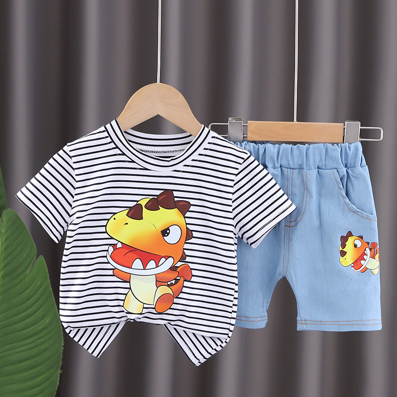 2023 새로운 소년 여름 세트 1 세 4 어린이 줄무늬 옷 2 만화 외국 스타일 3 아기 반팔 어린이 조수스토어 가기