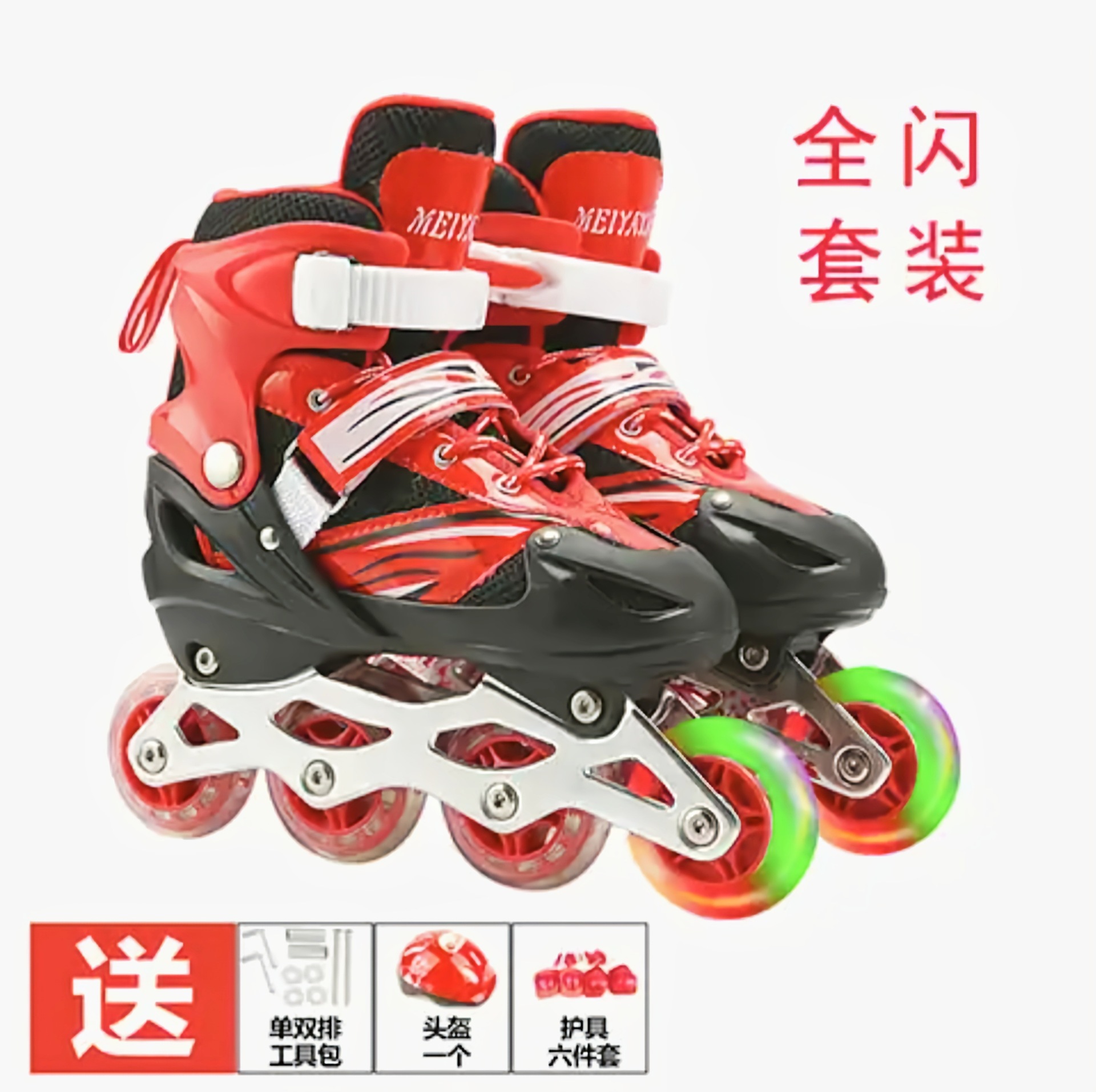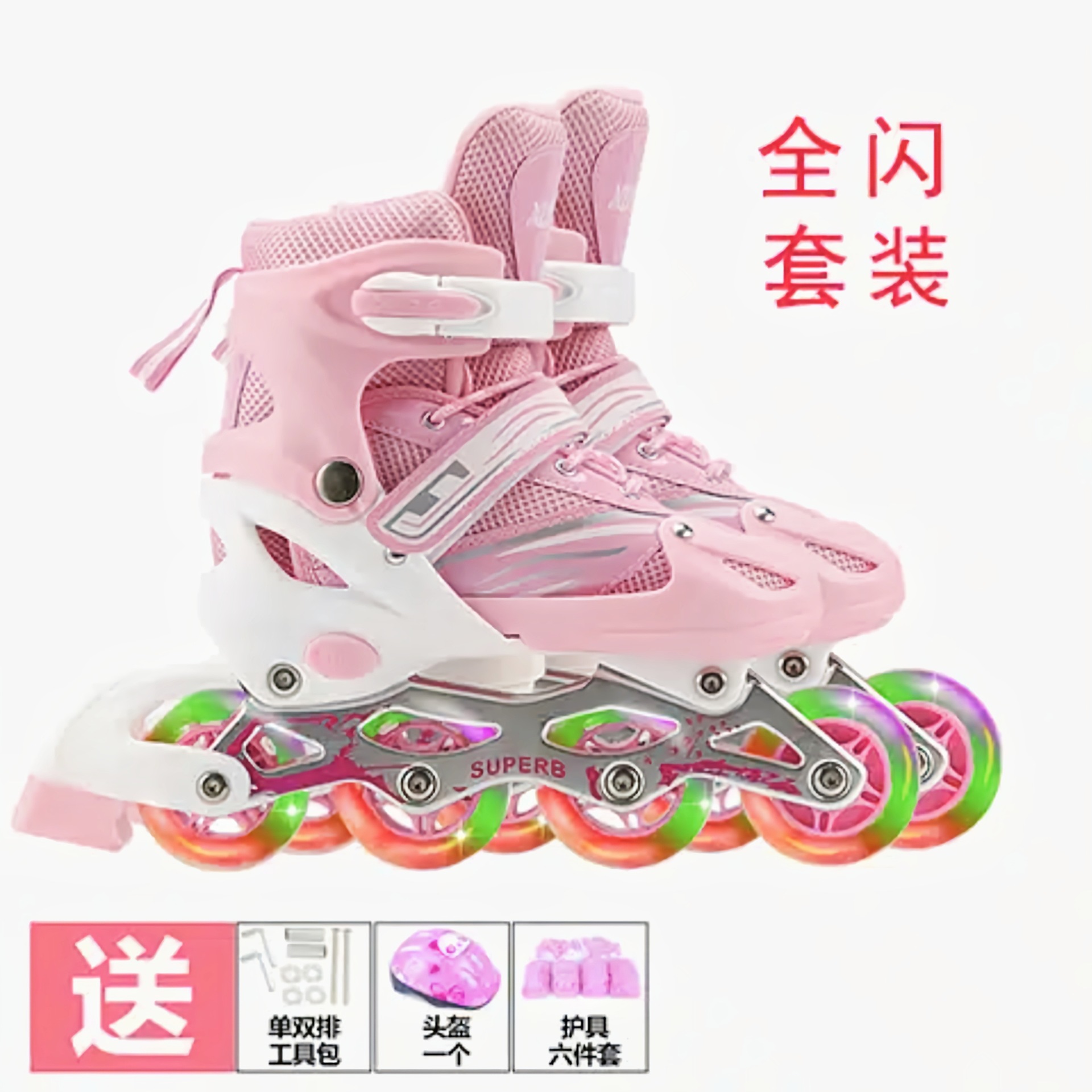 스케이트 싱글 행 소녀 소년 롤러 스케이트 풀 세트 초보자 성인 롤러 스케이트 플래시 휠