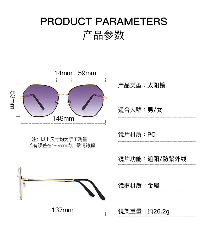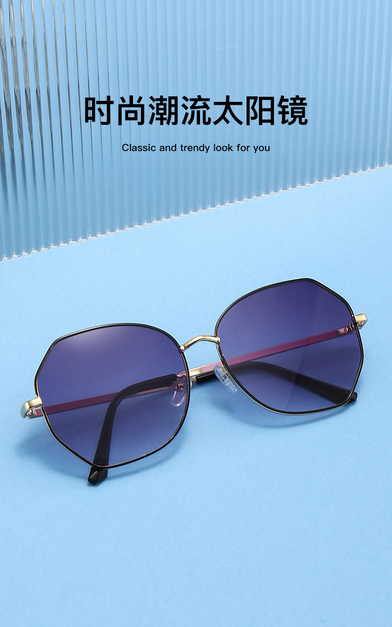 새로운 금속 선글라스 숙녀 패션 대형 프레임 슬림 선글라스 수분 태양 보호 UV 보호 운전 안경 도매