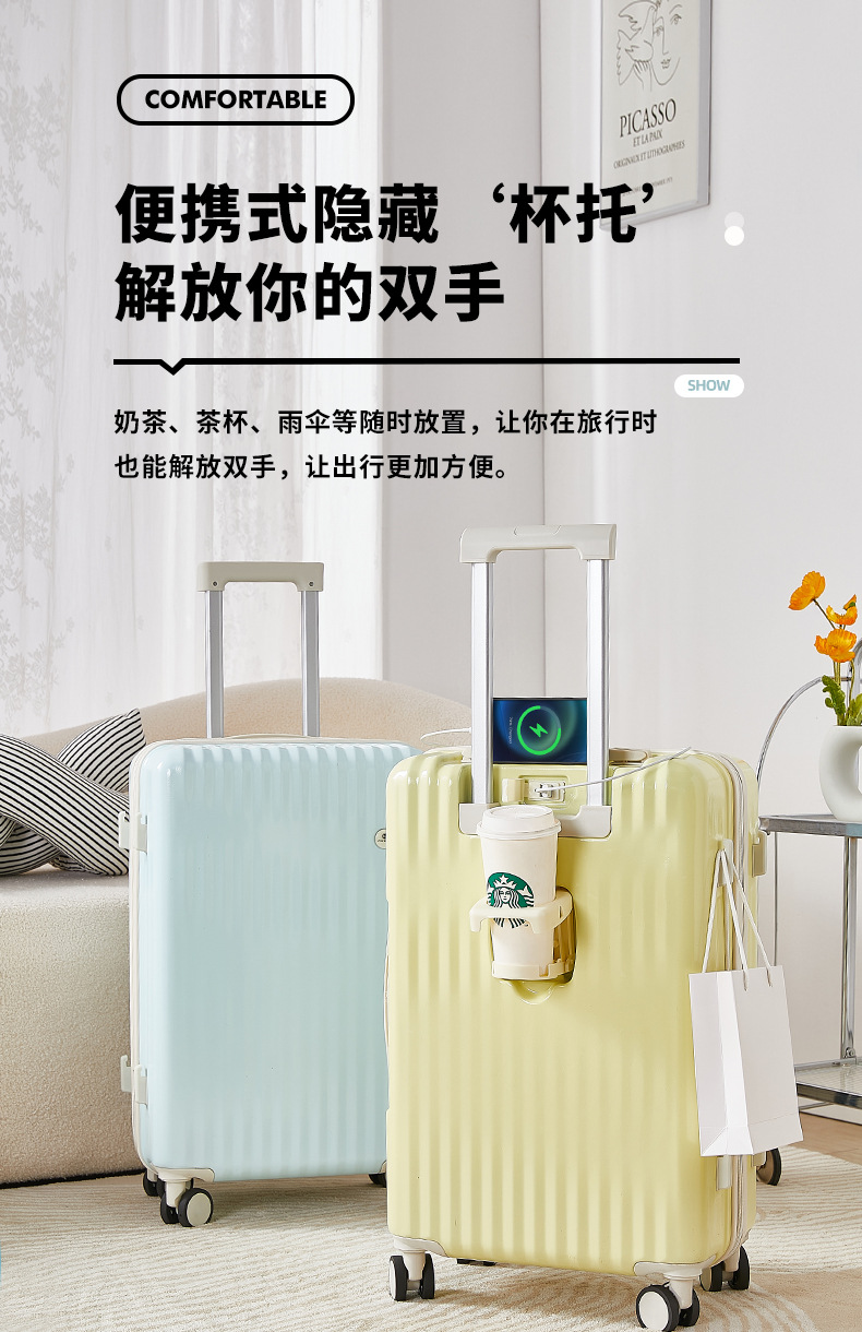 수하물 남성용 및 여성용 대용량 물컵 홀더 대형 20 인치 학생 한국식 트롤리 케이스 암호 상자 범용 휠 가방스토어 가기