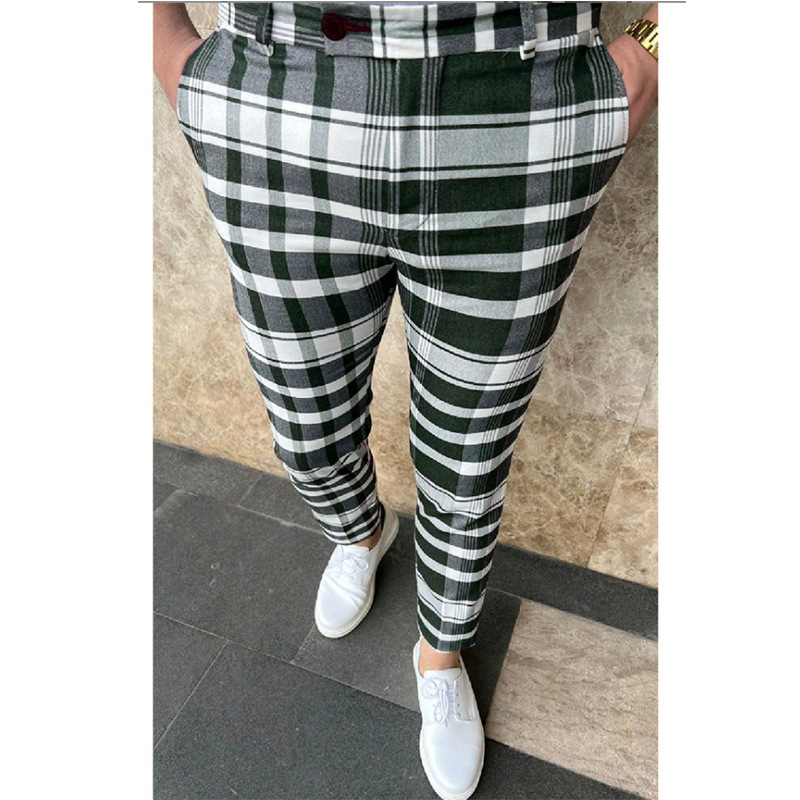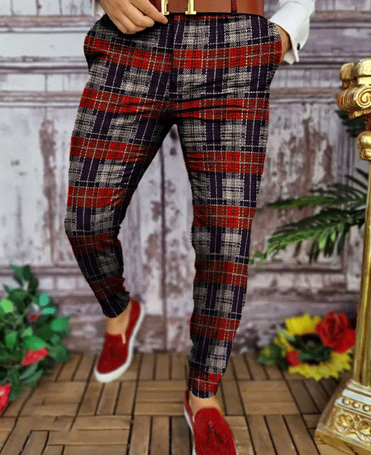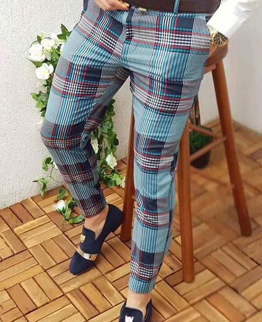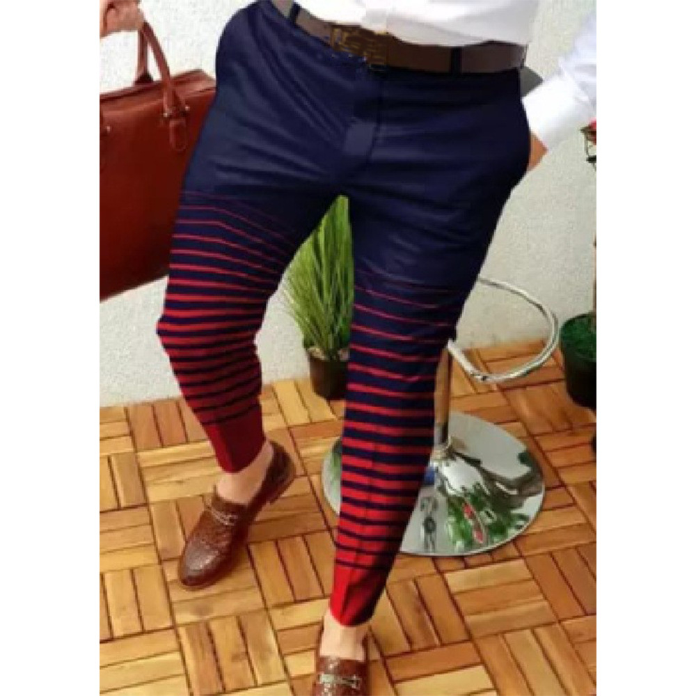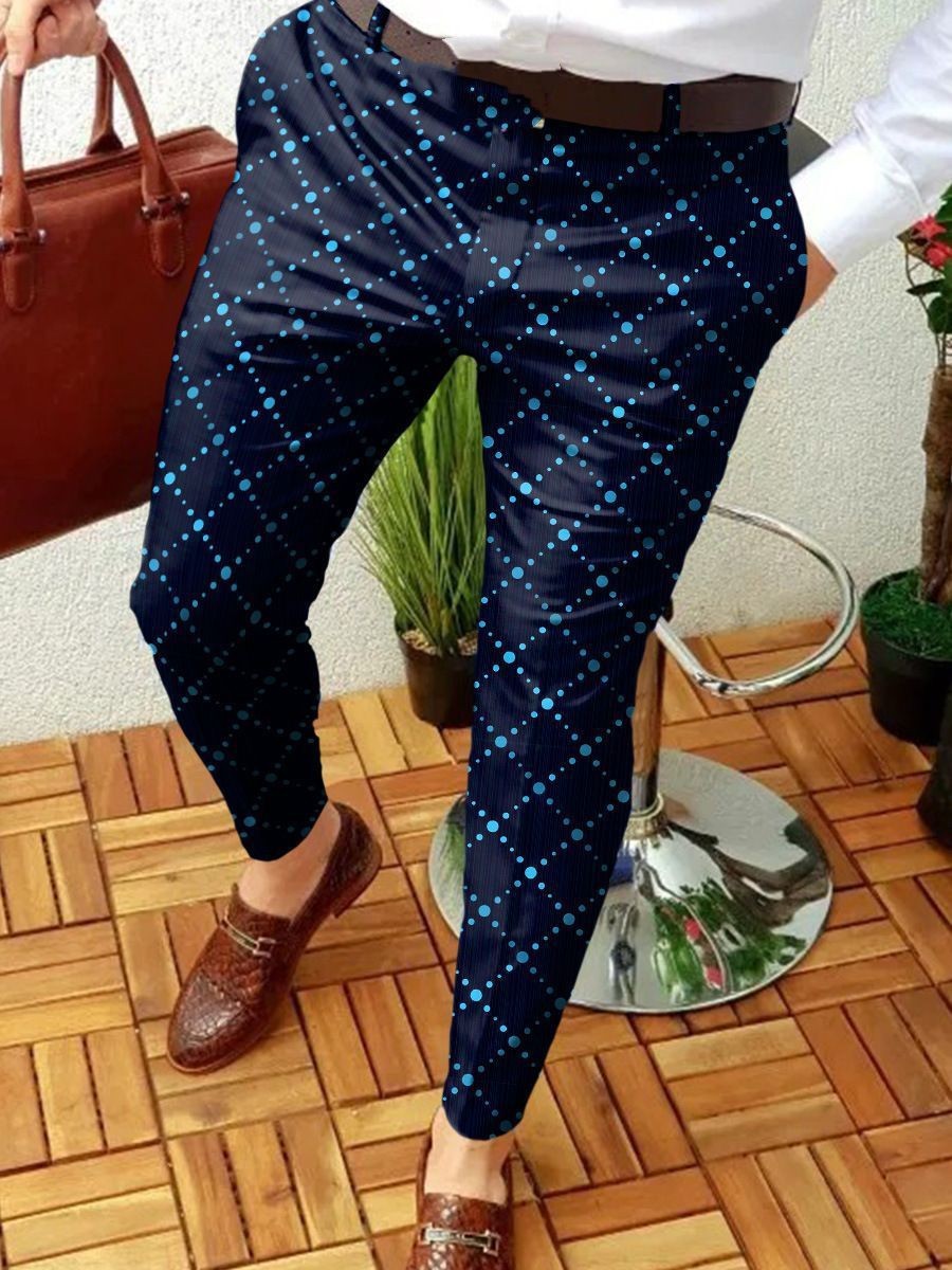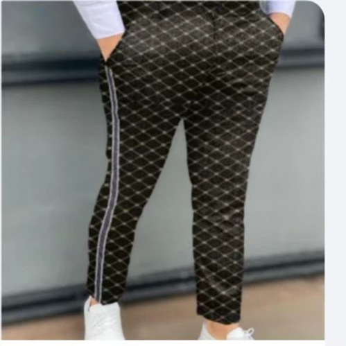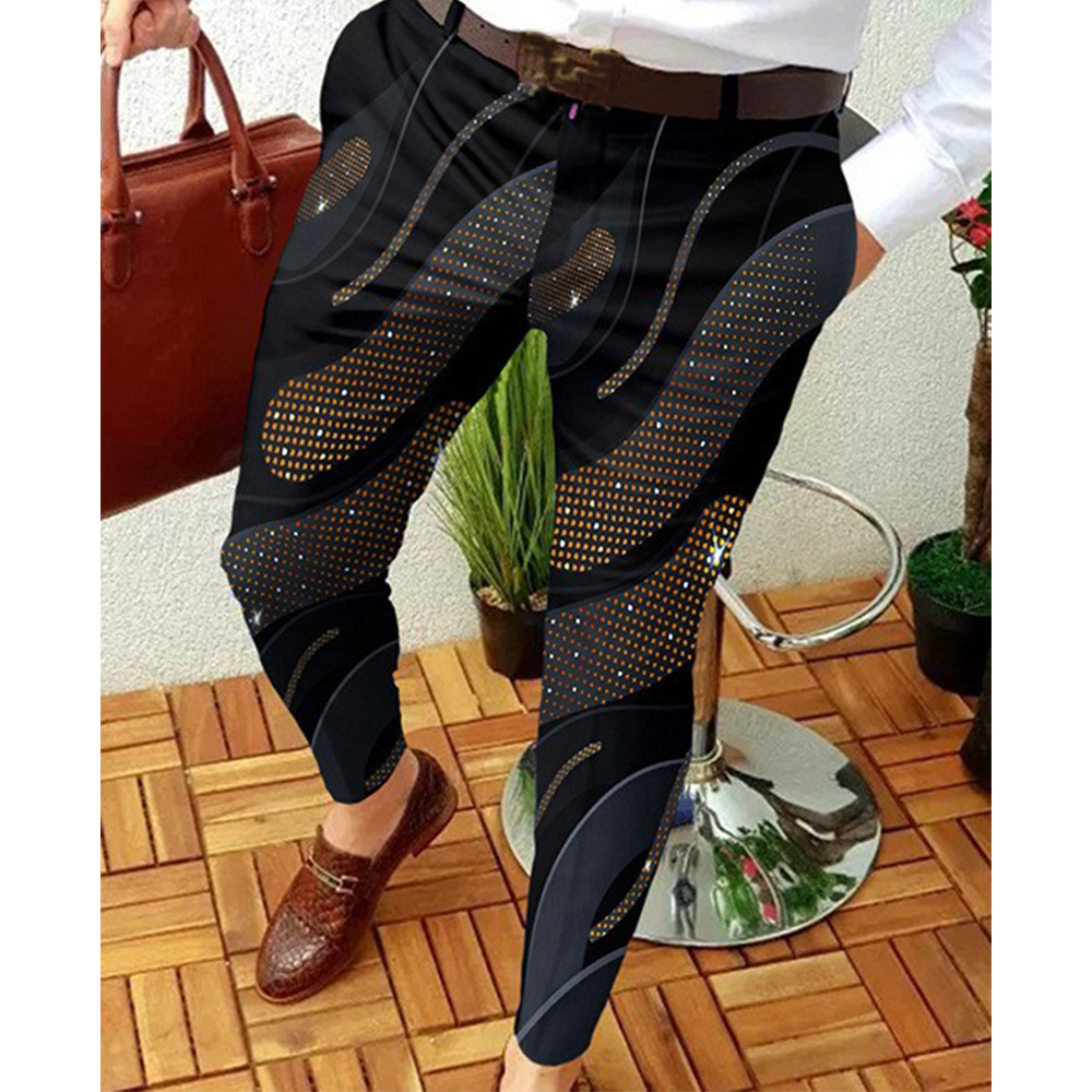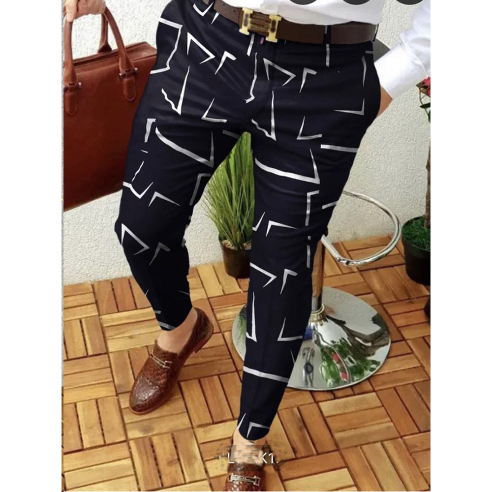 2026년 크로스보더 무역 봄 신상 남성 기하학 프린트 중간 허리 스트레이트 팬츠 남성용 긴바지 캐주얼