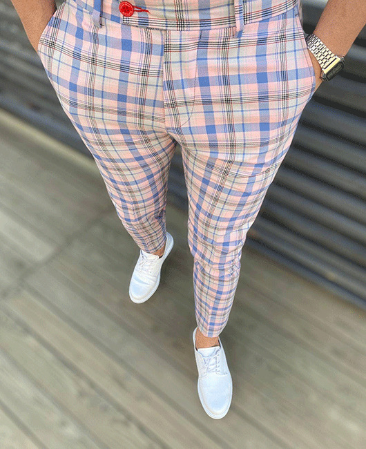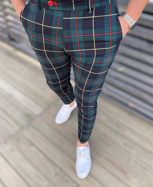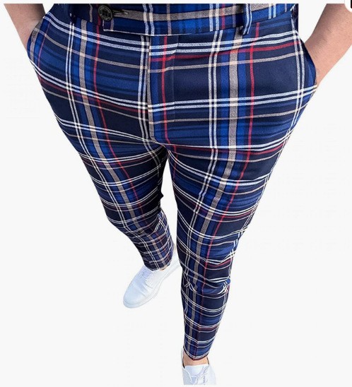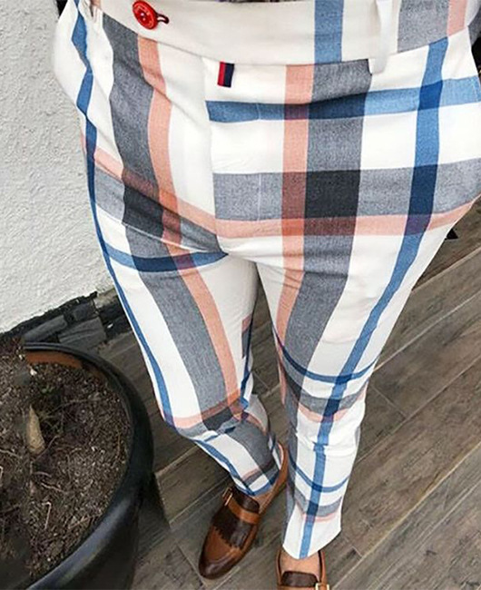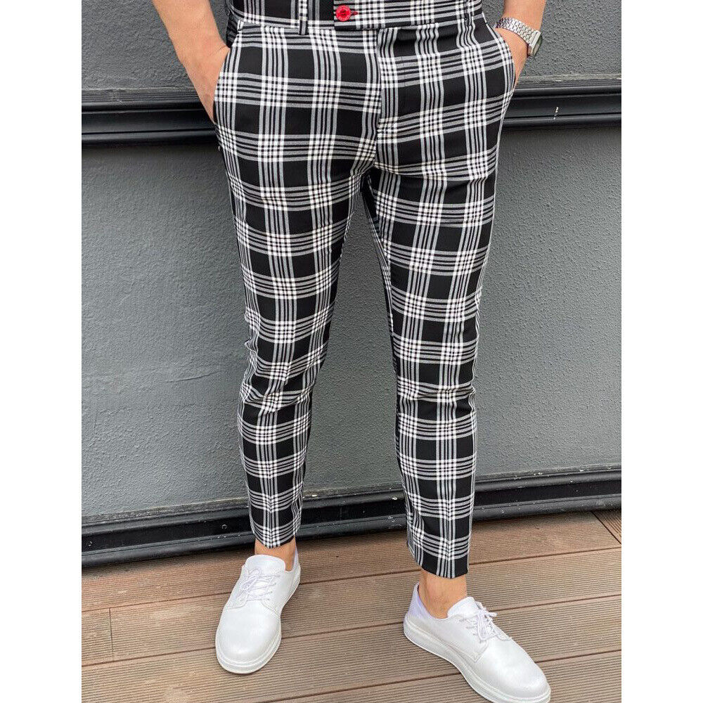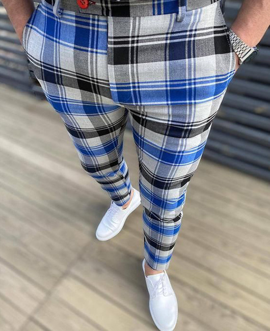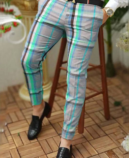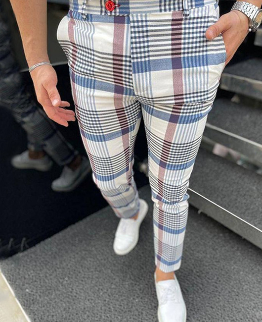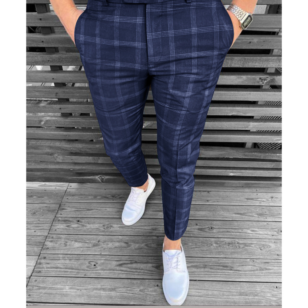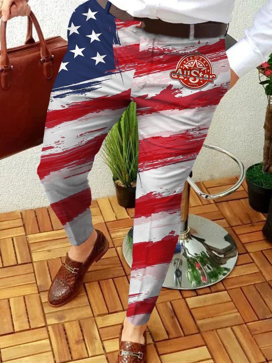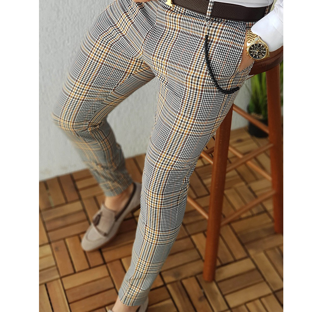 2026년 크로스보더 무역 봄 신상 남성 기하학 프린트 중간 허리 스트레이트 팬츠 남성용 긴바지 캐주얼