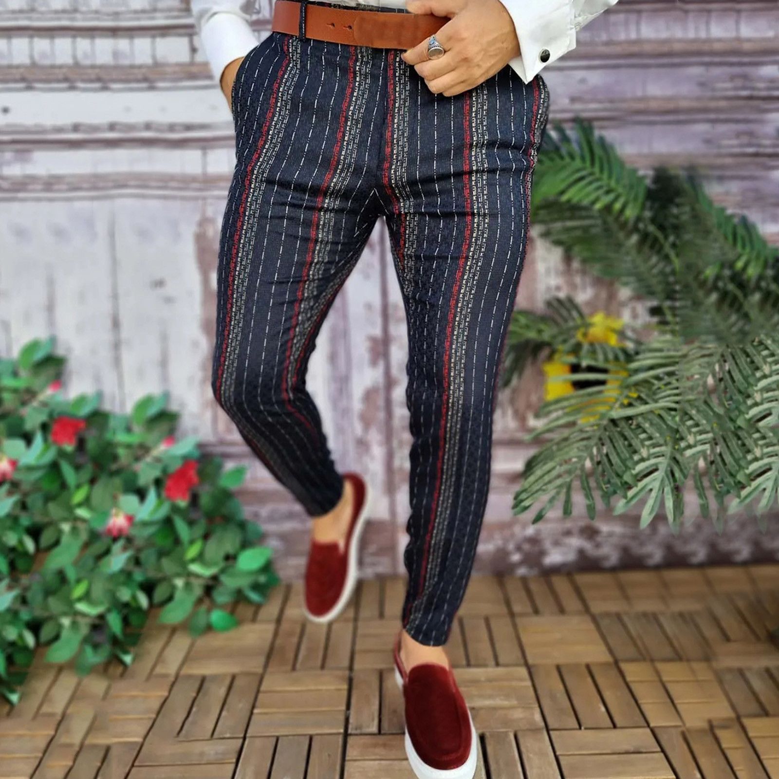 2026년 크로스보더 무역 봄 신상 남성 기하학 프린트 중간 허리 스트레이트 팬츠 남성용 긴바지 캐주얼스토어 가기