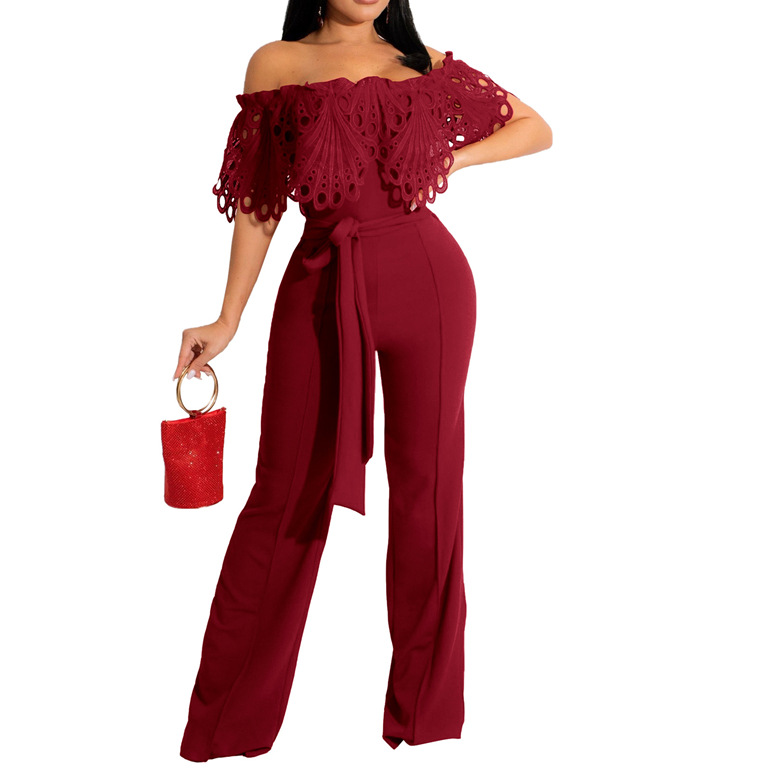 유럽과 미국 여름 새로운 크로스 보더 아마존 소원 빠른 판매 이베이 섹시 칼라 레이스 슬림핏 점프 수트 여성스토어 가기