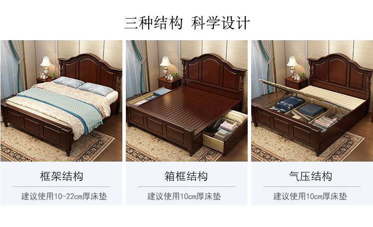 미국 국가 전체 단단한 나무 침대 현대 간단한 1.8 더블 공주 웨딩 침대 마스터 침실 2.0 m 기압 높은 상자 보관스토어 가기