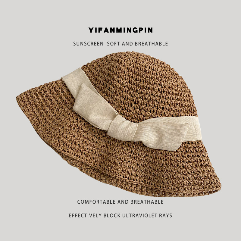 밀짚 통기성 어부 모자 비치 밀짚 모자 조커 모자 여성용 트렌디 한 일본 분지 모자 봄과 가을 차양 모자스토어 가기