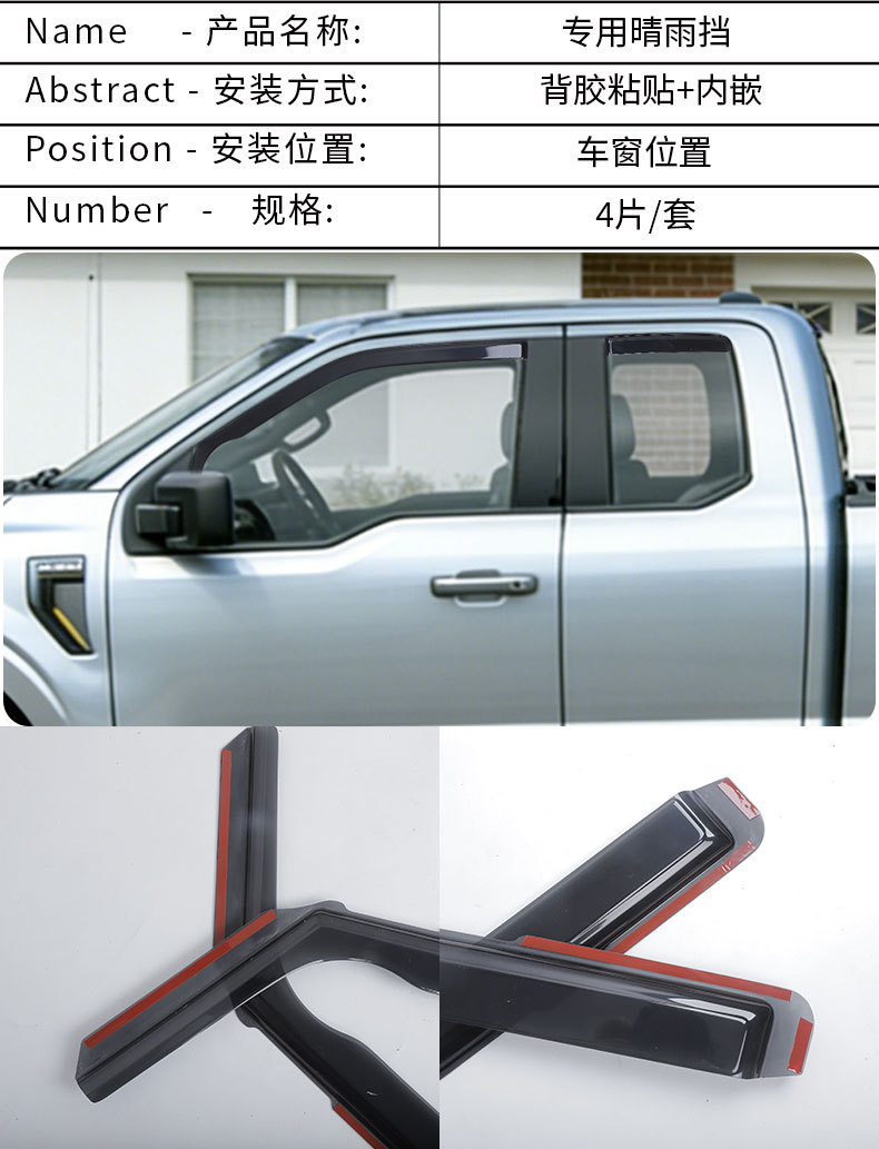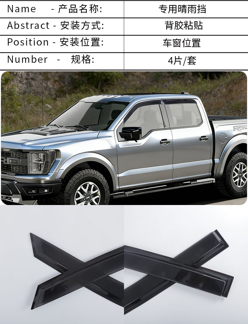 • 4片黑色款-猛禽F-150雨挡