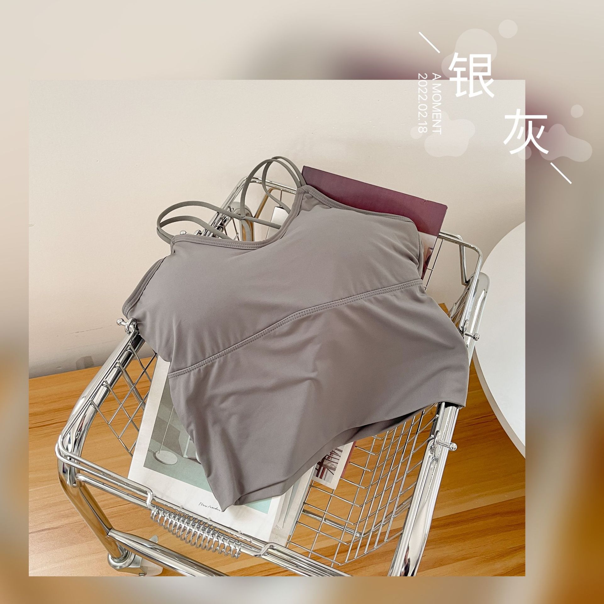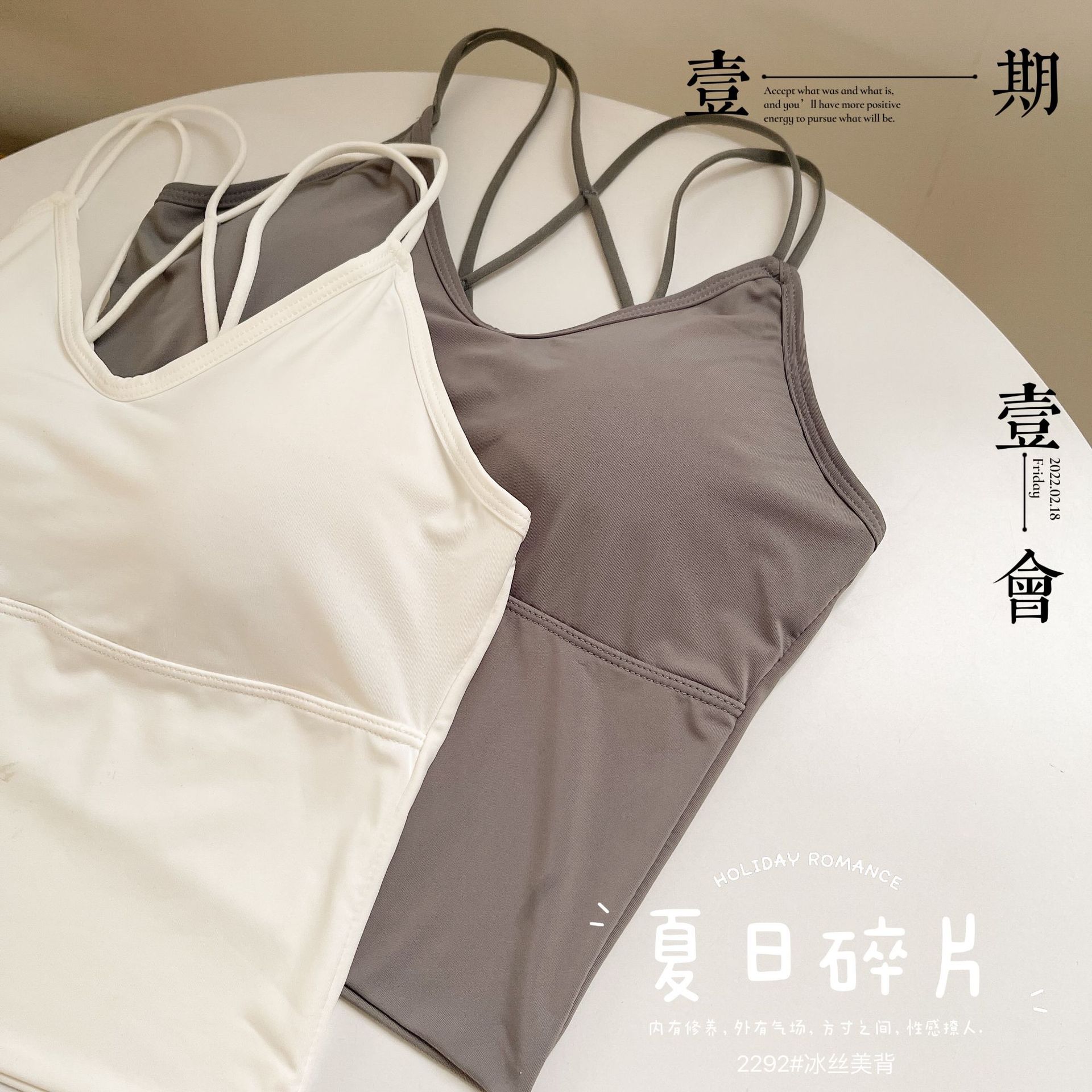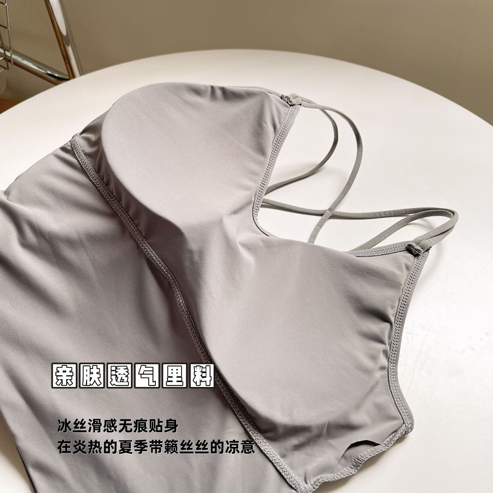 봄과 여름 새로운 아이스 실크 아름다운 등 V-넥 슬링 프랑스 스타일 벨트 가슴 패드 뜨거운 소녀 겉옷 포장 가슴 내부 착용 튜브 상단 속옷 여성용스토어 가기