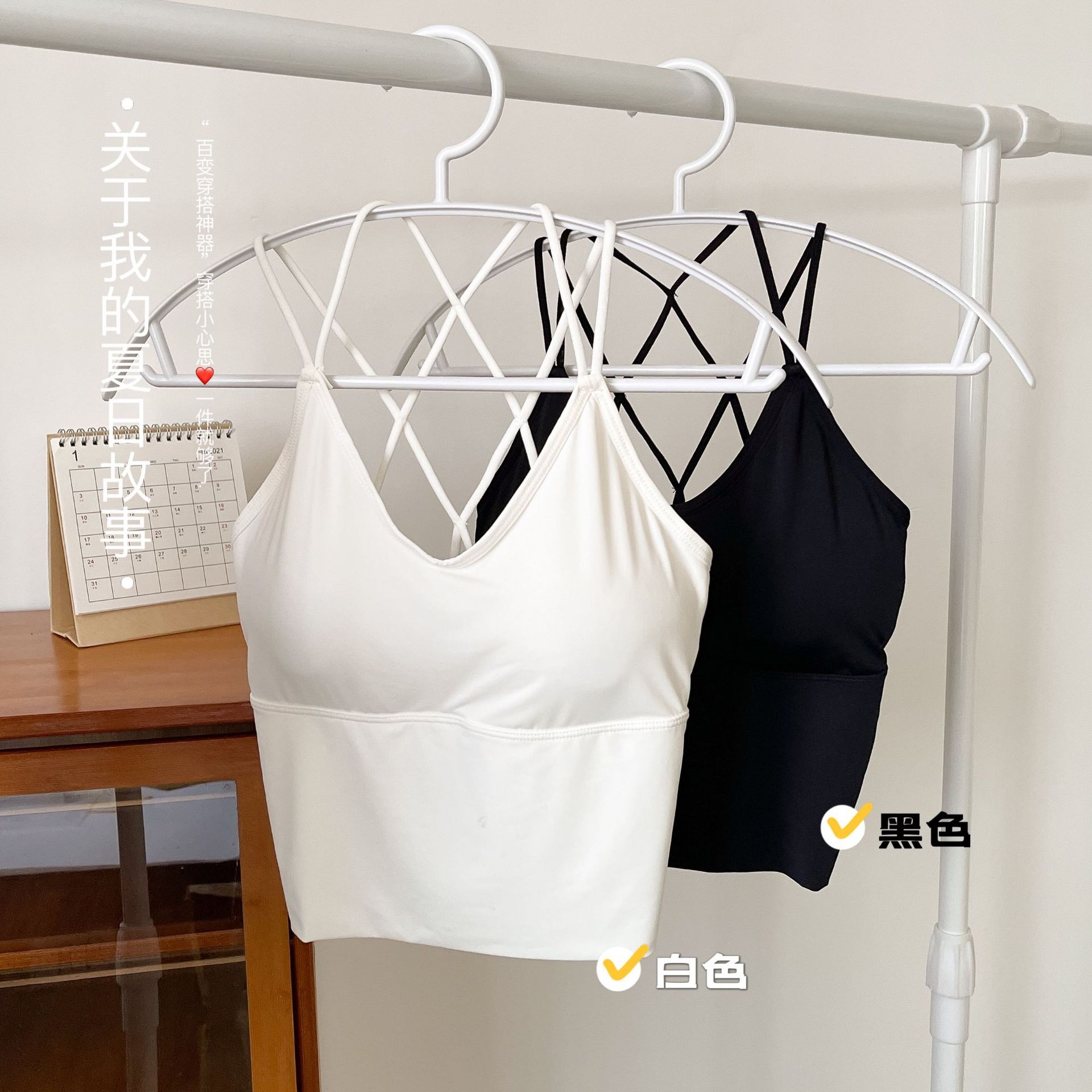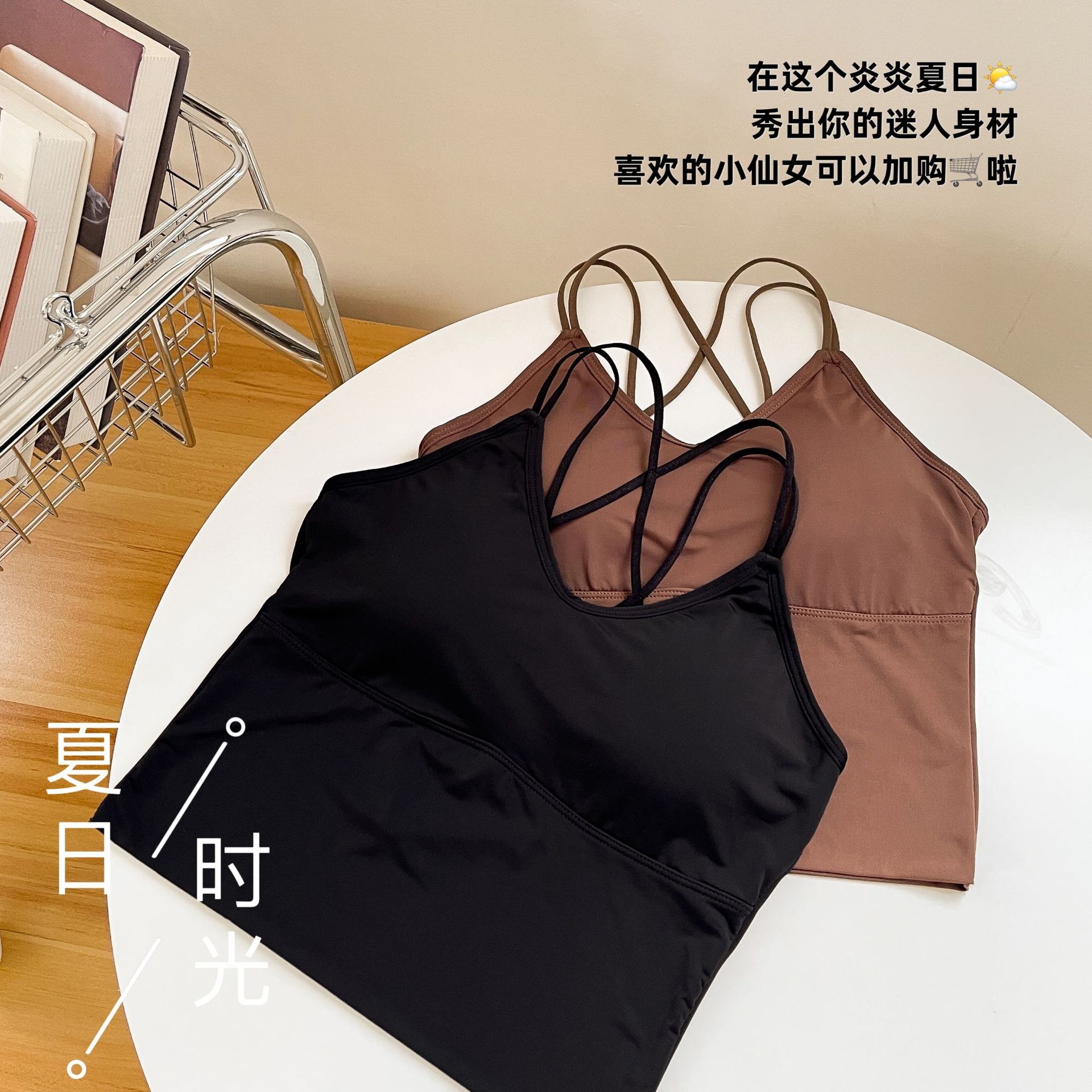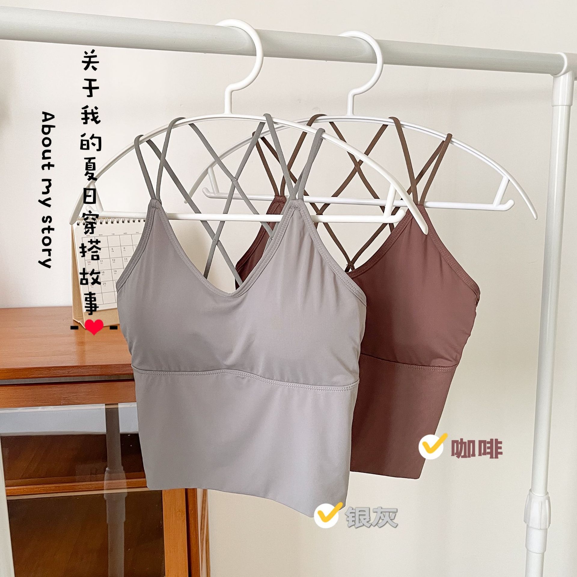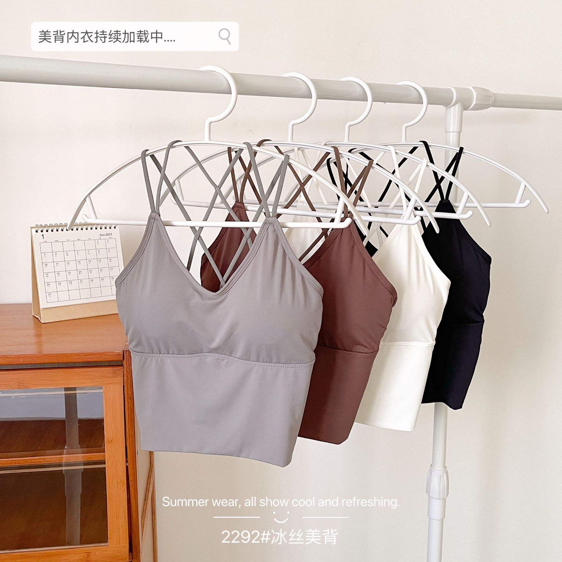 봄과 여름 새로운 아이스 실크 아름다운 등 V-넥 슬링 프랑스 스타일 벨트 가슴 패드 뜨거운 소녀 겉옷 포장 가슴 내부 착용 튜브 상단 속옷 여성용스토어 가기