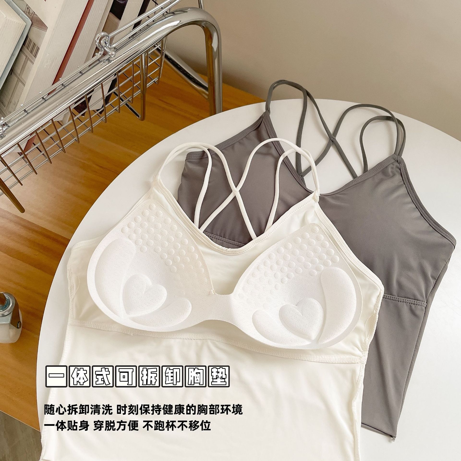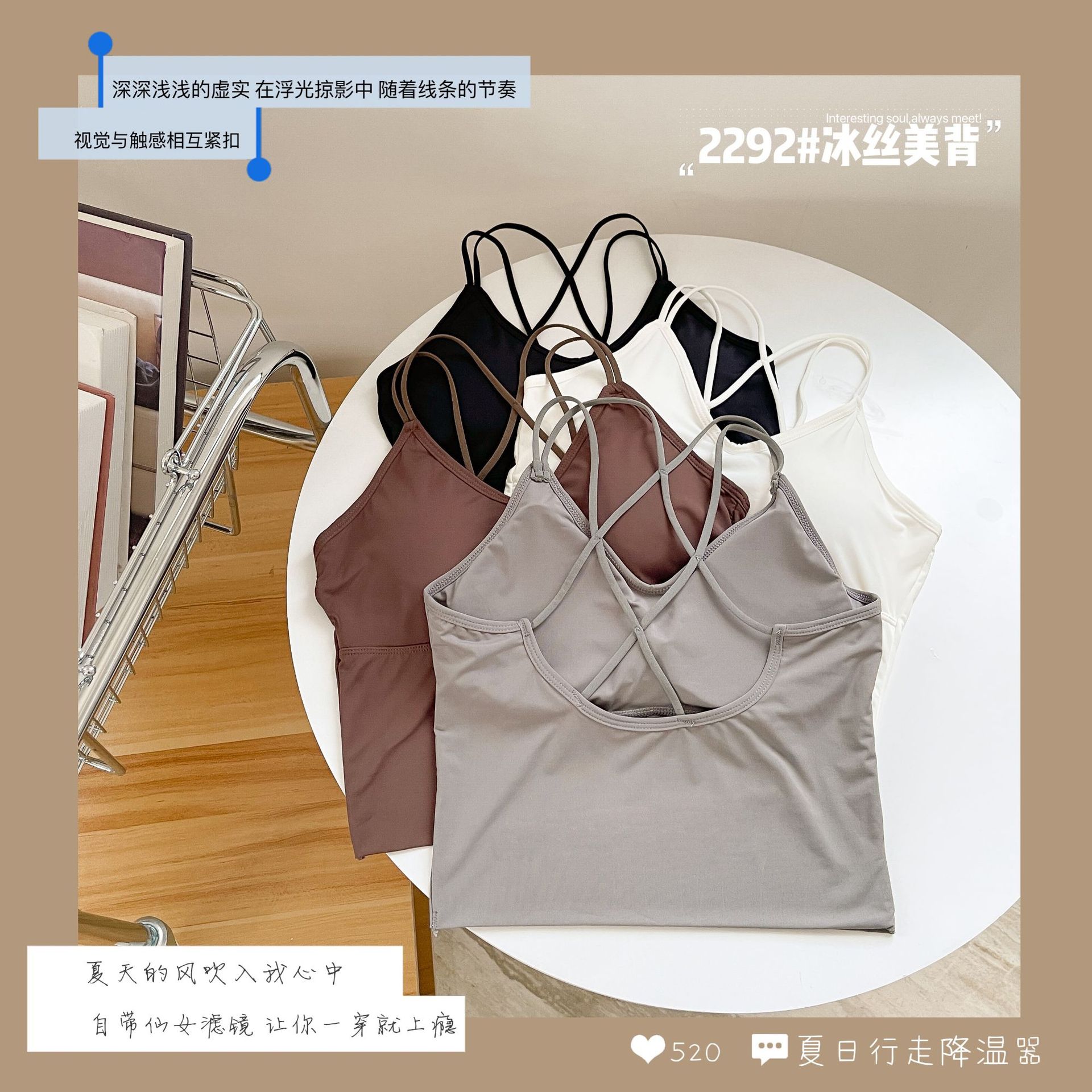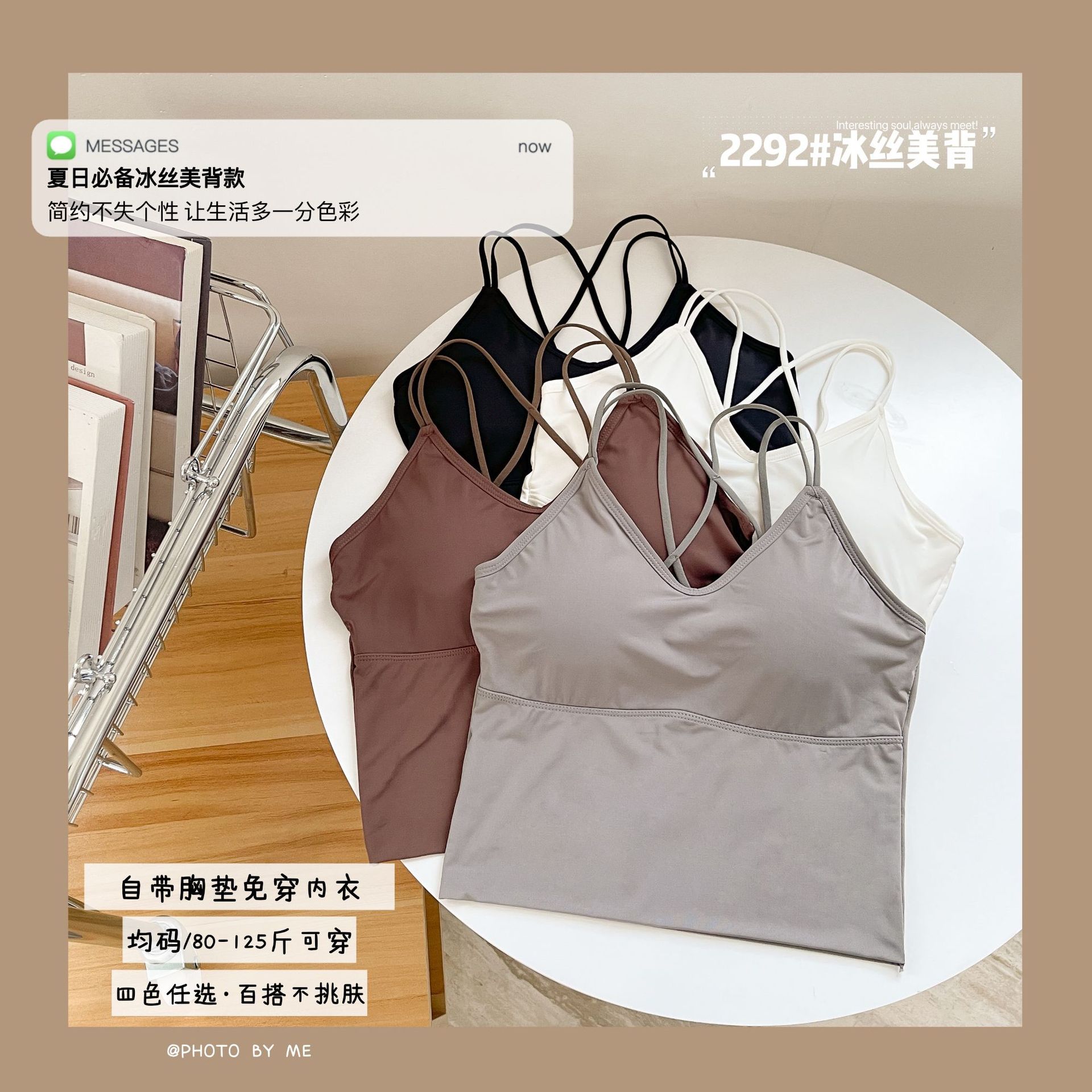 봄과 여름 새로운 아이스 실크 아름다운 등 V-넥 슬링 프랑스 스타일 벨트 가슴 패드 뜨거운 소녀 겉옷 포장 가슴 내부 착용 튜브 상단 속옷 여성용