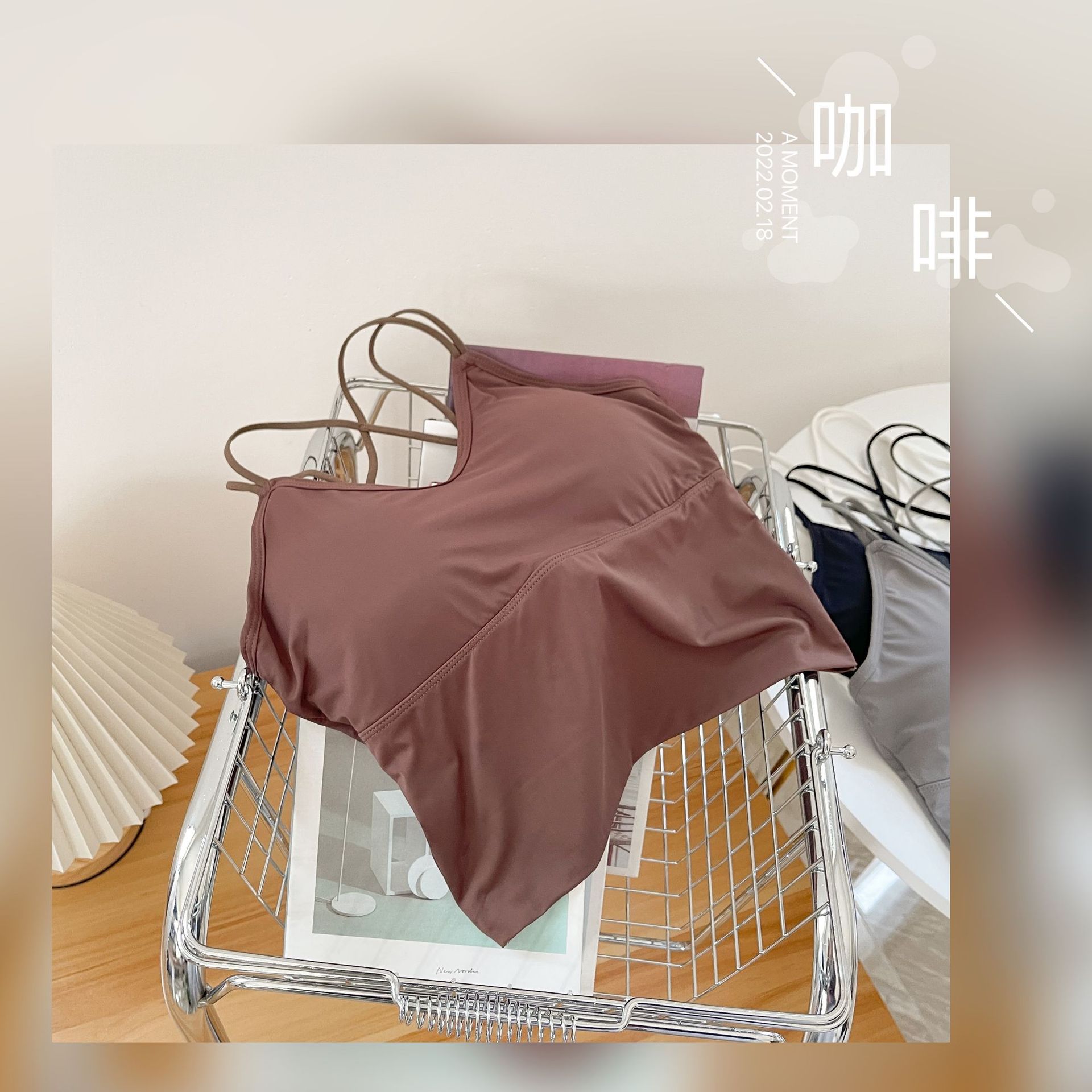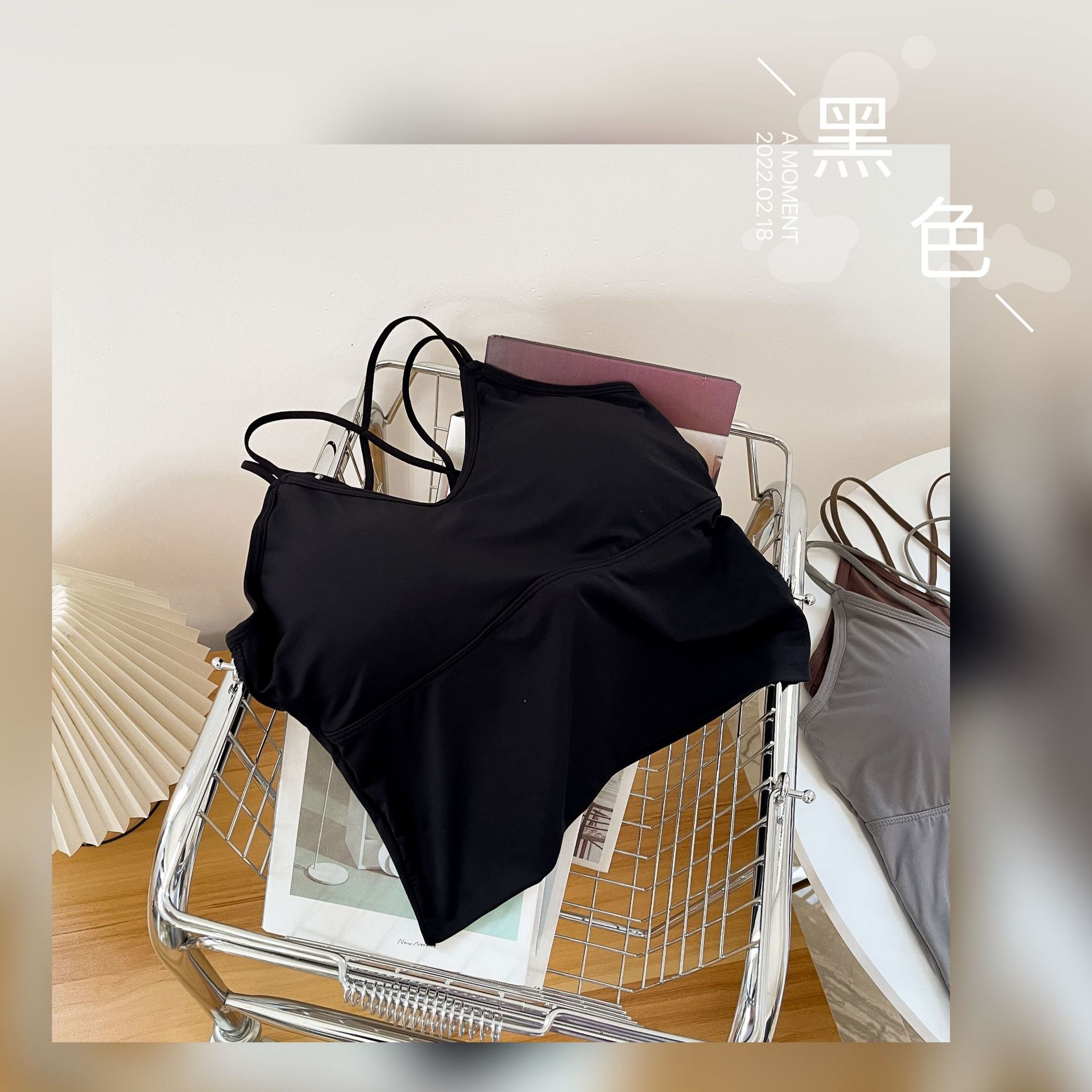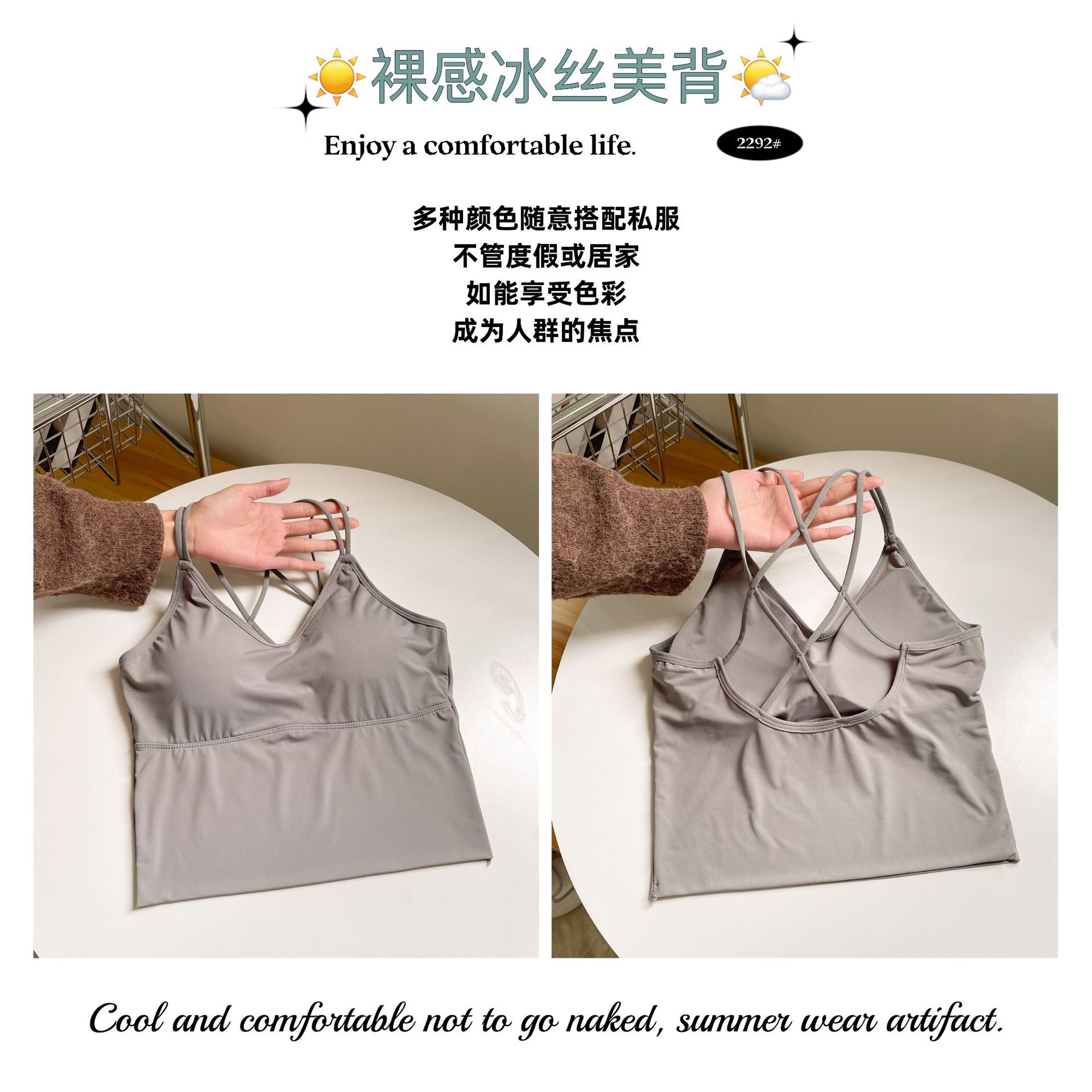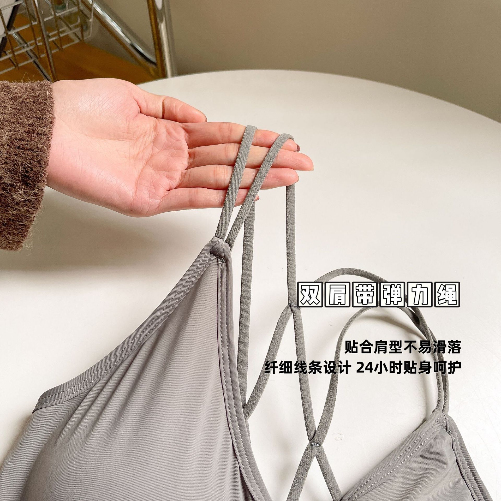 봄과 여름 새로운 아이스 실크 아름다운 등 V-넥 슬링 프랑스 스타일 벨트 가슴 패드 뜨거운 소녀 겉옷 포장 가슴 내부 착용 튜브 상단 속옷 여성용