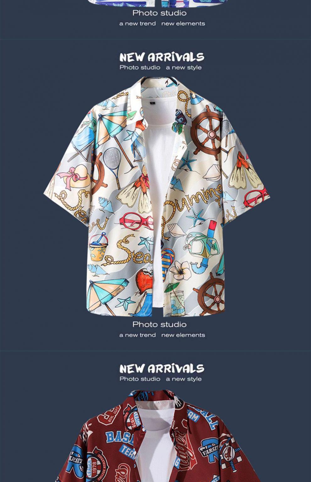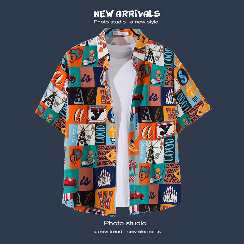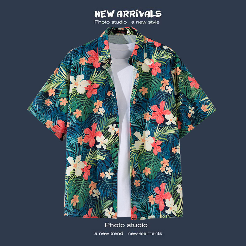 반팔 꽃무늬 셔츠 남성용 하이난 섬 의류 비치 의류 Sanya Xia Wei Feng 태국 여행 커플 캐주얼 루즈한 코트스토어 가기
