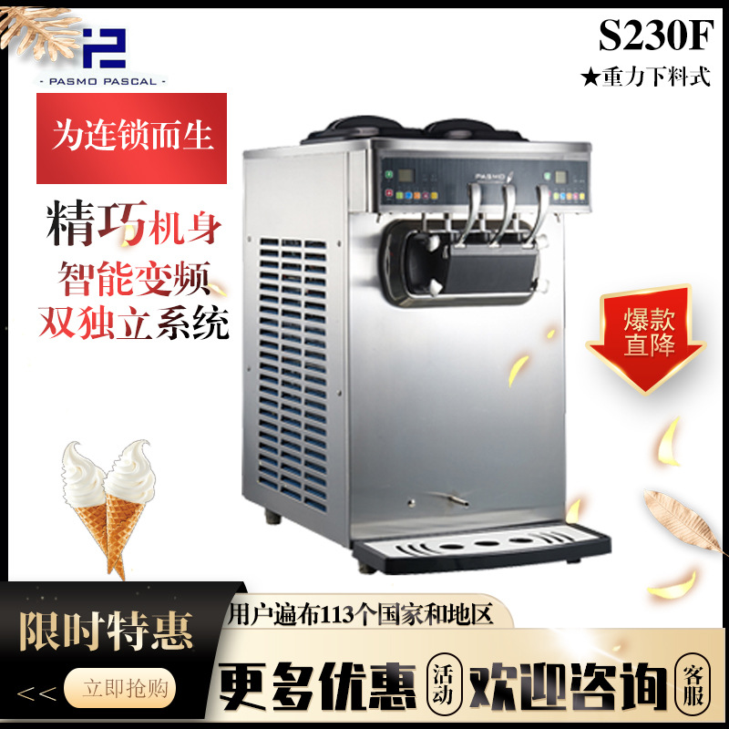 Pasmo 100 세계 무역 상업용 아이스크림 기계 자동 데스크탑 3 헤드 더블 실린더 상업용 소프트 아이스크림 기계