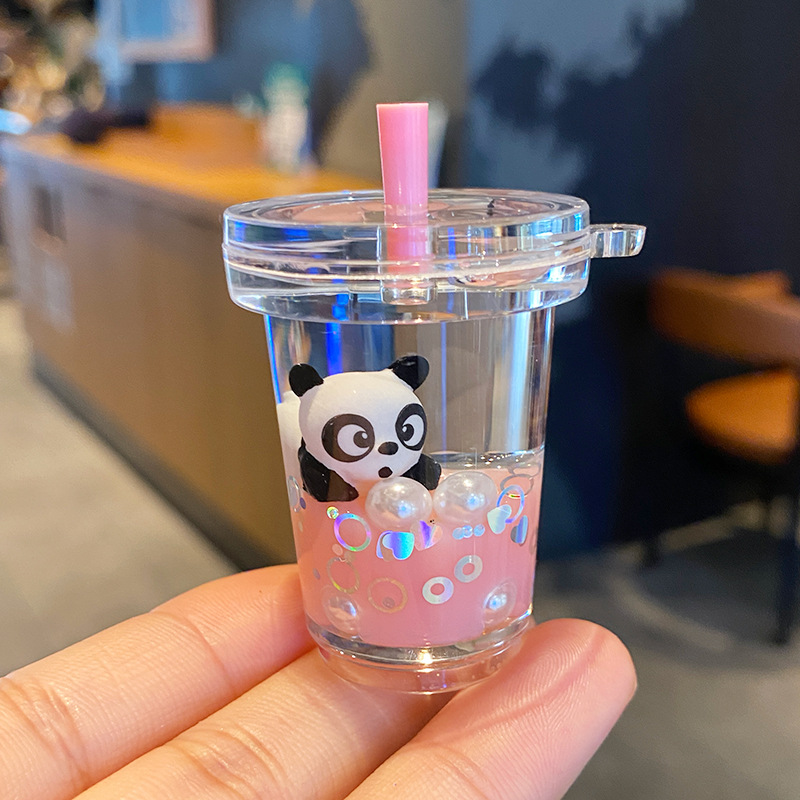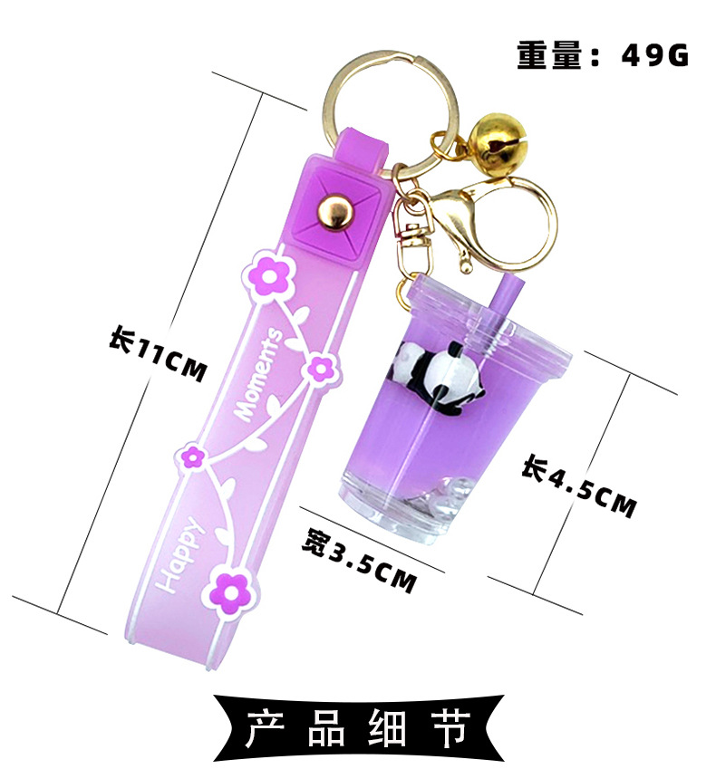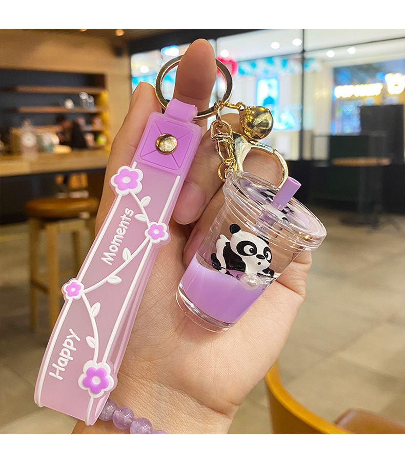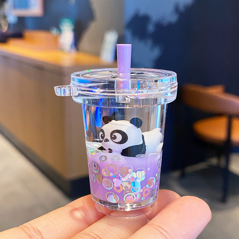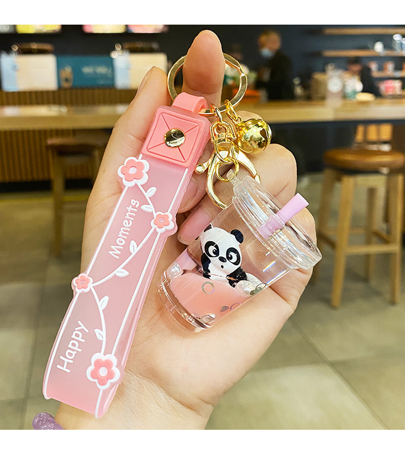 귀여운 팬더 퀵 샌드 키 체인 드리프트 병 우유 차 컵 액체 펜던트 학교 가방 자동차 펜던트 열쇠 고리 선물