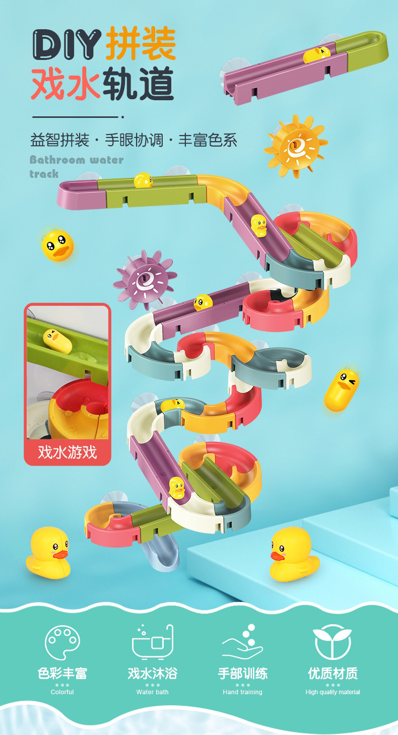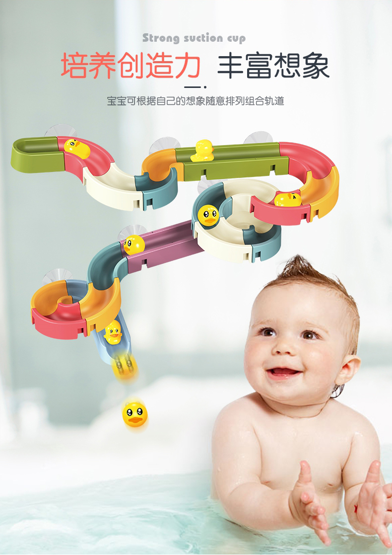 DIY 조립 트랙 볼 미끄러운 목욕 장난감 오리 미끄러운 어린이 욕실 샤워 뿌리 장난감스토어 가기