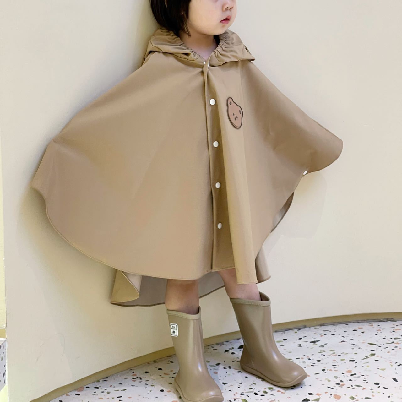 새로운 일본과 한국 어린이 비옷 곰 판초 라이트 케이프 비옷 유치원 책가방 방수 비옷스토어 가기