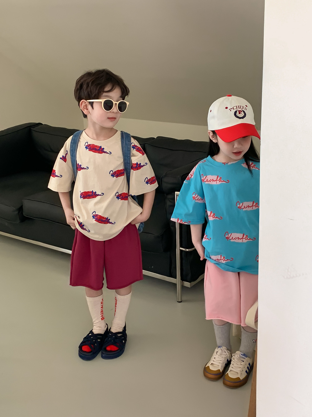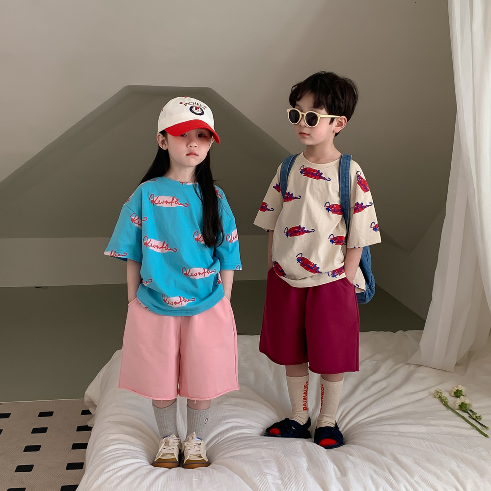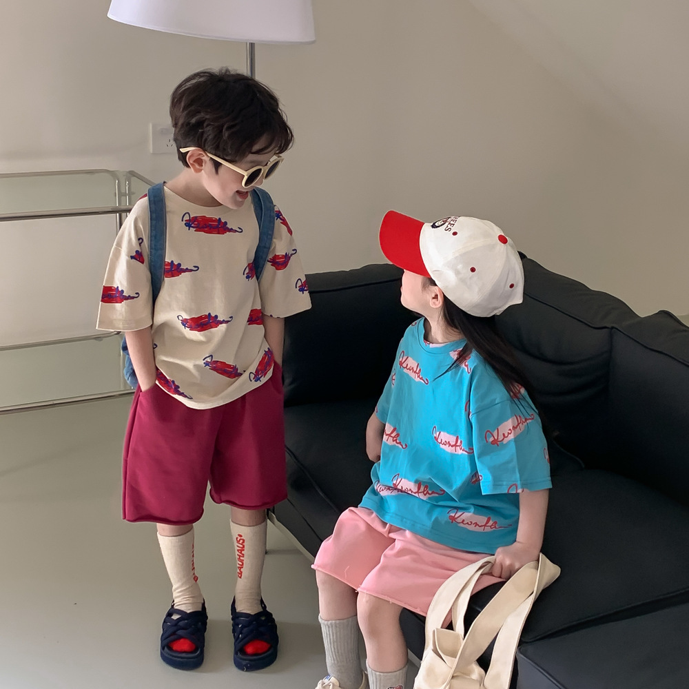 아동 티셔츠 2025 여름 스타일 소년과 소녀 캐주얼 루즈 한국 스타일 아동 낙서 문자 인쇄 반팔 Xiaomeng스토어 가기